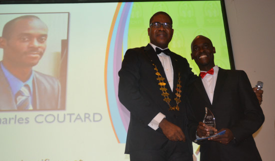 Le président national de la JCI Haiti, Jude Jean Jacques en compagnie du lauréat des lauréats, Jean Paul Charles Coutard « À l’image des grands noms de notre pays. tels que Jean Jacques Dessalines, Henri Christophe et Alexandre Pétion pour ne citer que ceux-là, vous faites partie de cette famille de jeunes citoyens âgés de 18 à 40 ans qui excellent dans leur domaine d’activité et qui personnifient les plus hautes qualités de la jeunesse internationale », a déclaré Jude Jean Jacques, le Président national 2013 de la JCI-Haïti. « En reconnaissant ces jeunes, la JCI Haïti les encourage à rechercher l’excellence et à servir l’humanité » a poursuivi Jude Jean Jacques, tout en insistant sur cette initiative qui selon lui, constitue la contribution de la JCI dans la formation d’autres leaders qui vont créer une meilleure société haïtienne.