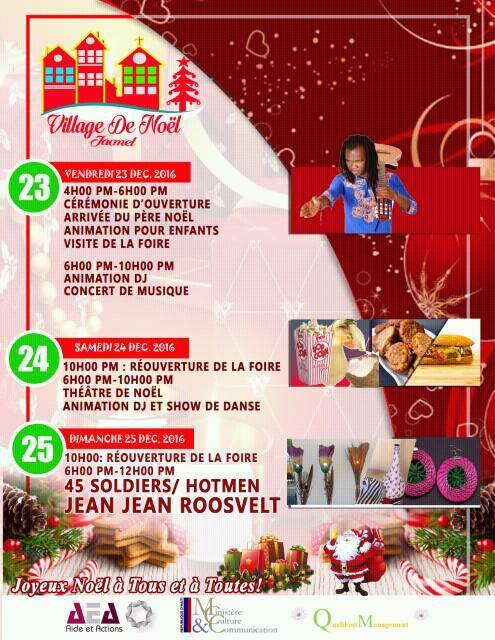 Mais le clou de l’édition 2016 du Village de Noël de Jacmel c'est pour ce dimanche 25 décembre dans la soirée avec la participation en spectacle du chanteur, guitariste interprète haïtien très connu, Jean Jean Roosevelt, médaille d’or du concours de chanson de la 7ème édition des Jeux de la Francophonie https://www.haitilibre.com/article-9440-haiti-culture-felicitations-a-jean-jean-roosevelt-medaille-d-or-de-la-chanson-francophone.html Un rendez-vous a ne pas manquer ! Lire aussi : https://www.icihaiti.com/article-19605-icihaiti-jacmel-lancement-du-village-de-noel-2016.html https://www.haitilibre.com/article-13402-haiti-culture-jean-jean-roosevelt-en-concert-au-vietnam.html https://www.haitilibre.com/article-9440-haiti-culture-felicitations-a-jean-jean-roosevelt-medaille-d-or-de-la-chanson-francophone.html HL/ TB / HaïtiLibre