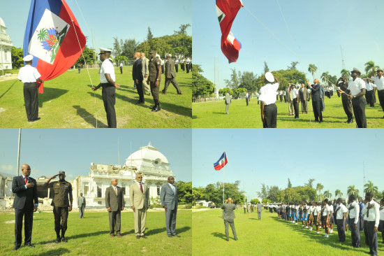 Le Président Michel Martelly, a participé aujourd’hui, à la levée des couleurs sur la pelouse du Palais National, en compagnie de Mario Andrésol, Directeur Général de la Police Nationale d’Haïti, des Maires de Carrefour et de Delmas, respectivement Yvon Jérôme et Wilson Jeudy et de plusieurs délégations d’écoliers de la région métropolitaine. Par cette cérémonie, le Chef de l’État, qui fait de l’éducation, du civisme et de l’encadrement des jeunes, l’un des objectifs majeurs de sa Présidence, entend réanimer le culte du drapeau national, qui doit reprendre sa place, dans notre vie de tous les jours. Après la montée des couleurs, le Président Martelly a eu un dialogue ouvert avec les écoliers, dans les jardins du Palais et les a encouragés à s’adonner à leurs études en vue de répondre à leurs obligations envers la Nation. Le Président Martelly a offert un petit déjeuner aux participants suivit d'une séance de photos avec ces jeunes.