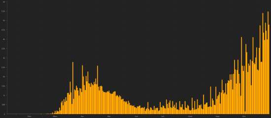 La hausse des cas reste soutenue dans cette deuxième vague, sans que l’on puisse dire pour le moment si le pic est atteint. France : Cas confirmés depuis le premier cas : 1,975,827cas (+23,794 en 24h), la veille (33,172) Guérisons : 137,124 personnes (+2,201 en 24h), la veille (+1,258) Taux national de Guérison : 6.94% (+) Décès : 43,868 décès (+932 en 24h), la veille (+425) Cas actifs : (excluant décès et guérisons) 1,794,835 (+19,907 en 24h), la veille (+ 31,489) Amérique latine et Caraïbe cas actifs (moins décès et guérisons) : Brésil : Brésil : 371,103 cas (+8,259 en 24h), la veille (+1,489) Mexique : 158,429 cas (correction des autorités sanitaires) avance d’une place Argentine : 150,856 cas (+1,299 en 24h), la veille (-7,371) Colombie : 59,688 cas (+858 en 48h), précédent (-2,761 ) Pérou : 39,147 cas (+2,195 en 24h), la veille (-2,817) République Dominicaine : 21,006 cas (+779 en 24h), la veille (+291) Panama : 18,392 (-60 en 24h), la veille (-367) Chili : 9,752 cas (+488 en 24h), la veille (+519) Guyane française : 8,901 cas (+26 cas en 24h), la veille (+15) Équateur : 10,741 cas (+1,130 en 24h), la veille (+857) Guadeloupe : 7,305 cas (-9 en 24h), la veille (-1) Martinique : 4,436 cas (-10 en 24h), précédent (-4) Jamaïque : 4,328 cas (-38 en 24h), la veille (+5) Bahamas : 1,726 (-51 en 24h), la veille (-30) Haïti : 1,235 cas (+8 en 24h), précédent (-10) Cuba : 445 (+13 en 24h), la veille (-36) HAÏTI : Situation épidémiologique : Si l’on en croit le Ministère de la Santé Publique, 8 nouveaux cas de Covid-19 auraient été confirmés en Haïti le 11 novembre 2020 (dernières données partielles disponibles) pour un total de 9,168 cas sur l’ensemble du territoire national depuis le premier cas (19 mars 2020 https://www.haitilibre.com/article-30319-haiti-sante-origine-des-2-premiers-cas-de-covid-19-en-haiti.html ). Précédente mise à jour (+8 cas le 10 novembre) Guérisons : : 7,701 personnes (inchangé depuis le 10 novembre) Taux de guérison : 84.00% (-) Décès : (non mis à jour par le Ministère depuis le 26 octobre). Total national : 232 (42.10% femmes 57.90% hommes) Taux de mortalité : 2.53% (=) Cas actifs : (moins décès et guérisons) 1,235 cas (+8 en 24h), précédent (-10) Cas importés : 152 cas depuis la réouverture des aéroports et +43 depuis le dernier bilan datant du 9 juillet (109) https://www.haitilibre.com/article-31348-haiti-flash-152-cas-importes-depuis-la-reouverture-des-aeroports.html (Depuis, ces informations ne sont plus rendues disponibles) Cas suspects investigués depuis le 19 mars : 34,109 (+145 en 24h) Cas testés depuis le début de la pandémie : 34,095 (+193 en 24h en date du 11 novembre). Le très faible nombre de personnes testées (dépistage) ne permet pas statistiquement de faire une estimation réaliste des cas de Covid-19 en Haïti. Personnes hospitalisées actuellement : (62 en date du 10 novembre) Personnes traitées à domicile actuellement : (415 en date du 10 novembre) Personnes en soins intensifs actuellement : (information non disponible) Cas confirmés par département du 9 au 10 novembre : (dernières informations disponibles) Ouest 6,110 (+5) Nord 659 (inchangé) Artibonite 569 (inchangé) Centre 483 (+1) Nord-Est 300 (inchangé) Sud-Est 269 (inchangé) Sud 246 (+2) Nord-Ouest 221 (inchangé) Grand'Anse 170 (inchangé) Nippes 141 (inchangé) ÉTATS-UNIS : Situation épidémiologique : États-Unis : Cas depuis le premier cas (9 mars 2020) : 10,744,871 cas (+189,402 en 24h), la veille (+154,527) Guérisons : 4,095,146 personnes (+43,890 en 24h), la veille (+54,081) Taux national de Guérison : 38,11% (-) Décès : 244,357 décès (+1,922 en 24h), la veille (+635) Taux national de mortalité : 2.27% (-) Cas actifs (moins décès et guérisons) : 6,405,368 cas (+143,590 en 24h), la veille (+99,811) Tests : 159,701,058 personnes ont été testées (+1,634,483 en 24h), la veille (+1,448,154) USA : Nombre de cas confirmés quotidiens
