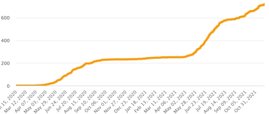 Vaccination : 7,78 millards de doses de vaccin injectées (+40 millions de doses injectées en 24h. Mise à jour 23 novembre 2021 (dernières données disponibles). HAÏTI : Situation épidémiologique : Selon le Ministère de la Santé Publique, +53 nouveaux cas en 24h de Covid-19 et de ses variants auraient été confirmés en Haïti le 16 novembre 2021 (dernières données partielles disponibles) pour un total de 24,936 cas confirmés sur l’ensemble du territoire national (47.2% de femmes et 52.8% hommes), depuis le premier cas (19 mars 2020 https://www.haitilibre.com/article-30319-haiti-sante-origine-des-2-premiers-cas-de-covid-19-en-haiti.html ). Précédente mise à jour (+64 cas le 15 novembre 2021). Guérisons : 20,846 (+38 en 24h) Taux de guérison : 83,59% (-) Décès : 719 décès +0 en 24h () Taux de mortalité : 2,88% (=) Haïti : Tendance des décès :