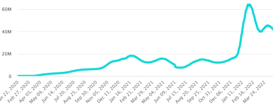 SITUATION MONDIALE 2019-2022 : Situation épidémiologique : Mercredi 20 avril 2022 le nombre de personnes contaminées dans le monde par le coronavirus Covid-19 et ses variants depuis le début de la pandémie (11 mars 2020) s’élève à 506,117,926 cas (+838,832 en 24h), la veille (+460,811) Nombre de pays contaminés : 225 *Guérisons : 458,295,794 personnes ont été guéries du Covid-19 dans le monde (+1,210,606 en 24h), la veille (+1,060,865) *Décès : 6,228,599 personnes sont mortes du Covid-19 dans le monde depuis le début de la pandémie (+3,405 en 24h), la veille (+1,877) *Cas actifs (moins décès et guérisons) dans le monde est actuellement de 41,593,533 cas (-375,179 en 24h), la veille (-601,931) Taux moyen de guérison au monde : 90,55% (+) Taux moyen de mortalité au monde : 1,23% (=) Monde : Tendance cas actifs : (moins guérisons et décès)
