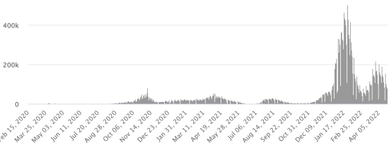 (Jour-1) Vaccination : 11,60 millards de doses de vaccin injectées (+10 millions de doses injectées. Mise à jour 24 avril 2022 (dernières données disponibles). HAÏTI : Avertissement : Le Ministère de la Santé Publique et de la Population (MSPP) n’as pas rendu disponible après le 15 avril 2022 les données quotidiennes sur la situation du Covid-19 en Haïti. En conséquence, les données ci-dessous sur la situation en Haïti sont les dernières disponibles. Selon le Ministère de la Santé Publique, +30 nouveaux cas de Covid-19 et de ses variants auraient été confirmés en Haïti en date du 15 avril 2022 (dernières données partielles disponibles) pour un total de 30,640 cas confirmés sur l’ensemble du territoire national (48,7% de femmes et 51,3% hommes), depuis le premier cas (19 mars 2020 https://www.haitilibre.com/article-30319-haiti-sante-origine-des-2-premiers-cas-de-covid-19-en-haiti.html ). Précédente mise à jour (+5 cas en date du 13 avril 2022). Guérisons : 29,389 (+77) Taux de guérison : 95,91% (+) Décès : 835 décès (+0) Taux de mortalité : 2,72% (=) 5ème vague (Omicron dominant) : Total de la 5ème vague (début 27 décembre 2021) 4,651 cas confirmés et 69 décès Dépistage depuis le début de la pandémie : 194,452 tests (+659 en 48h depuis le 19 mars 2020, dernières données disponibles. Notez que la très petite quantité de personnes dépistées chaque jour à l’échelon national sur une population estimé à 11,6 millions de citoyens, ne permet pas statistiquement de faire une estimation représentative et objective de la situation en Haïti, ce qui se traduit par un nombre de cas confirmés quotidiennement largement sous-évalué de l’avis des observateurs spécialistes. TOP 5 des Communes les plus touchées dans l’Ouest (2022) : Delmas : 746 (+0) ; Pétion-ville 625 (+0) ; Port-au-Prince 407 (+0) ; Tabarre 288 (+0) ; Croix-des-Bouquets 243 (+1) Cas confirmés par département (2022 / 2021 / 2020) : Ouest : 2022 : 2,570 cas ; (2021 : 9,890) ; (2020 : 6,945 cas) Nord : 2022 : 281 cas ; (2021 : 664) ; (2020 : 677 cas) Centre : 2022 : 241 cas ; (2021 : 1,001) ; (2020 : 508 cas) Artibonite : 2022 : 190 cas ; (2021 : 855) ; (2020 : 593 cas) Nord-Est : 2022 : 153 cas ; (2021 : 404) ; (2020 : 314 cas) Sud-Est : 2022 : 282 cas ; (2021 : 768) ; (2020 : 274 cas) Sud : 2022 : 216 cas ; (2021 : 891) ; (2020 : 262 cas) Nord-Ouest : 2022 : 266 cas ; (2021 : 383) ; (2020 : 229 cas) Grand'Anse : 2022 : 177 cas ; (2021 : 861) ; (2020 : 176 cas) Nippes : 2022 : 39 cas ; (2021 : 249) (2020 : 149 cas) Décès cumulés par département (2022-2021) : Ouest : 296 décès (2020 : 104 décès) Nord : 54 décès (2020 : 34 décès) Centre : 79 décès (2020 : 13 décès) Artibonite : 42 décès (2020 : 39 décès) Nord-Est : 7 décès (2020 : 6 décès) Sud : 51 décès (2020 : 6 décès) Sud-Est : 15 décès (2020 : 9 décès) Nord-Ouest : 15 décès (2020 : 12 décès) Grand'Anse : 7 décès (2020 : 13 décès) Nippes : 27 décès (2020 : 5 décès) Répartition des décès par âge (depuis le début de l’épidémie) : 0-9 ans : 15 décès 10-19 ans : 10 décès 20-29 ans : 31 décès 30-39 ans : 56 décès 40-49 ans : 80 décès 50-59 ans : 135 décès 60-69 ans : 187 décès 70-79 ans : 184 décès 80 ans et plus : 137 décès Vaccination : 174,804 haïtiens (1,5% de la population) +6,913 en 2 jours ont reçu une 1ère dose de vaccin depuis le 16 juillet 2021 date de la première injection à travers 149 centres de vaccinations ouverts et 120,967 haïtiens sont entièrement vaccinés (2 doses, 1.0% de la population) +5,547 en 2 jours jours. Mise à jour 17 avril 2022 dernières informations disponibles (source MSPP). Liste des 149 Centres de vaccination ouverts en Haïti (et horaires) par département : (mise à jour 20 octobre 2021, dernières informations disponibles) DIASPORA : Situation épidémiologique : USA : *Cas depuis le premier cas (29 février 2020) : 82,662,748 cas (+12,969 en 24h), la veille (+21,690) *Guérisons : 80,465,351 guérisons (+30,426 en 24h), la veille (+32,524) Taux national de Guérison : 97,34% (+) *Décès : 1,018,335 décès (+19 en 24h), la veille (+545) Taux national de mortalité : 1,23% (=) *Cas actifs (moins décès et guérisons) : 1,179,062 (-17,476 en 24h), la veille (-10,996) USA : Nombre de cas confirmés quotidiens :