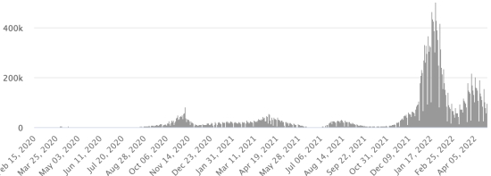 (Jour-1) Vaccination : 11,62 millards de doses de vaccin injectées (+10 millions de doses injectées). (Dernières données disponibles). HAÏTI : Avertissement : Le Ministère de la Santé Publique et de la Population (MSPP) n’as pas rendu disponible après le 18 avril 2022 les données quotidiennes sur la situation du Covid-19 en Haïti. En conséquence, les données ci-dessous sur la situation en Haïti sont les dernières disponibles. Selon le Ministère de la Santé Publique, +9 nouveaux cas de Covid-19 et de ses variants auraient été confirmés en Haïti en date du 18 avril 2022 (dernières données partielles disponibles) pour un total de 30,649 cas confirmés sur l’ensemble du territoire national (48,7% de femmes et 51,3% hommes), depuis le premier cas (19 mars 2020 https://www.haitilibre.com/article-30319-haiti-sante-origine-des-2-premiers-cas-de-covid-19-en-haiti.html ). Précédente mise à jour (+30 cas en date du 15 avril 2022). Guérisons : 29,454 (+65) Taux de guérison : 96,10% (+) Décès : 835 décès (+0) Taux de mortalité : 2,72% (=) 5ème vague (Omicron dominant) : Total de la 5ème vague (début 27 décembre 2021) 4,660 cas confirmés et 69 décès. Fin de la 5ème vague. Dépistage depuis le début de la pandémie : 194,978 tests depuis le 19 mars 2020 (+526 en 3 jours), dernières données disponibles. Notez que la très petite quantité de personnes dépistées chaque jour à l’échelon national sur une population estimé à 11,6 millions de citoyens, ne permet pas statistiquement de faire une estimation représentative et objective de la situation en Haïti, ce qui se traduit par un nombre de cas confirmés quotidiennement largement sous-évalué de l’avis des observateurs spécialistes. TOP 5 des Communes les plus touchées dans l’Ouest (2022) : Delmas : 746 (+0) ; Pétion-ville 625 (+0) ; Port-au-Prince 407 (+0) ; Tabarre 288 (+0) ; Croix-des-Bouquets 243 (+0) Cas confirmés par département (2022 / 2021 / 2020) : Ouest : 2022 : 2,571 cas ; (2021 : 9,890) ; (2020 : 6,945 cas) Nord : 2022 : 286 cas ; (2021 : 664) ; (2020 : 677 cas) Centre : 2022 : 241 cas ; (2021 : 1,001) ; (2020 : 508 cas) Artibonite : 2022 : 190 cas ; (2021 : 855) ; (2020 : 593 cas) Nord-Est : 2022 : 154 cas ; (2021 : 404) ; (2020 : 314 cas) Sud-Est : 2022 : 282 cas ; (2021 : 768) ; (2020 : 274 cas) Sud : 2022 : 216 cas ; (2021 : 891) ; (2020 : 262 cas) Nord-Ouest : 2022 : 268 cas ; (2021 : 383) ; (2020 : 229 cas) Grand'Anse : 2022 : 177 cas ; (2021 : 861) ; (2020 : 176 cas) Nippes : 2022 : 39 cas ; (2021 : 249) (2020 : 149 cas) Décès cumulés par département (2022-2021) : Ouest : 296 décès (2020 : 104 décès) Nord : 54 décès (2020 : 34 décès) Centre : 79 décès (2020 : 13 décès) Artibonite : 42 décès (2020 : 39 décès) Nord-Est : 7 décès (2020 : 6 décès) Sud : 51 décès (2020 : 6 décès) Sud-Est : 15 décès (2020 : 9 décès) Nord-Ouest : 15 décès (2020 : 12 décès) Grand'Anse : 7 décès (2020 : 13 décès) Nippes : 27 décès (2020 : 5 décès) Répartition des décès par âge (depuis le début de l’épidémie) : 0-9 ans : 15 décès 10-19 ans : 10 décès 20-29 ans : 31 décès 30-39 ans : 56 décès 40-49 ans : 80 décès 50-59 ans : 135 décès 60-69 ans : 187 décès 70-79 ans : 184 décès 80 ans et plus : 137 décès Vaccination : 175,526 haïtiens (1,5% de la population) +722 en 7 jours ont reçu une 1ère dose de vaccin depuis le 16 juillet 2021 date de la première injection à travers 149 centres de vaccinations ouverts et 122,181 haïtiens sont entièrement vaccinés (2 doses, 1.0% de la population) +1,214 en 7 jours jours. Mise à jour 24 avril 2022 dernières informations disponibles (source MSPP). Liste des 149 Centres de vaccination ouverts en Haïti (et horaires) par département : (mise à jour 20 octobre 2021, dernières informations disponibles) DIASPORA : Situation épidémiologique : USA : *Cas depuis le premier cas (29 février 2020) : 82,789,716 cas (+55,853 en 24h), la veille (+71,115) *Guérisons : 80,547,402 guérisons (+40,466 en 24h), la veille (+41,585) Taux national de Guérison : 97,29% (-) *Décès : 1,019,008 décès (+426 en 24h), la veille (+247) Taux national de mortalité : 1,23% (=) *Cas actifs (moins décès et guérisons) : 1,223,306 (+14,961 en 24h), la veille (+29,283) USA : Nombre de cas confirmés quotidiens :