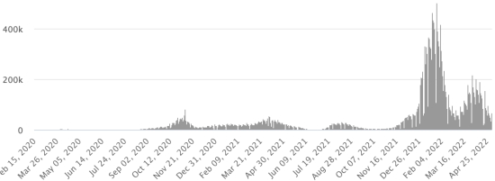 (Jour-1) Vaccination : 577,06 millions de doses de vaccin injectées depuis le 14 décembre 2020 date de la première injection aux États-Unis (220,000). (Dernières données disponibles). RÉPUBLIQUE DOMINICAINE : Avertissement: La Direction centrale d’épidémiologie dominicaine n’a pas publiée de mise à jour depuis 48h. Les chiffres ci-dessous sont les mêmes que ceux publiés le 2 mai Cas confirmés depuis le 1er mars 2020 : 579,443 cas (+64 en 24h), précédent (+65). Premier cas (1er mars 2020) Guérisons : 574,726 guérisons (+43 en 24h), précédent (+35) Taux national de Guérison : 99,18% (=) Décès : 4,376 décès (+0), la veille (+0) Taux de mortalité : 0,75% (=) Taux de positivité sur 4 semaines épidémiologiques : 1.08% (+) Cas actifs : (excluant décès et guérisons) 341 cas (+21 en 24h) la veille (+30) République Dominicaine : Nombre de cas confirmés quotidiens :