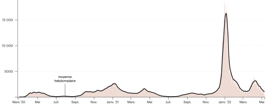 (Jour-1) Vaccination : 11,73 millards de doses de vaccin injectées (+10 millions de doses injectées). (Dernières données disponibles). HAÏTI : Avertissement : Le Ministère de la Santé Publique et de la Population (MSPP) n’as pas rendu disponible après le 2 mai les données quotidiennes sur la situation du Covid-19 en Haïti. En conséquence, les données ci-dessous sur la situation en Haïti sont les dernières disponibles. Selon le Ministère de la Santé Publique, +4 nouveaux cas de Covid-19 et de ses variants auraient été confirmés en Haïti en date du 2 mai 2022 (dernières données partielles disponibles) pour un total de 30,707 cas confirmés sur l’ensemble du territoire national (48,7% de femmes et 51,3% hommes), depuis le premier cas (19 mars 2020 https://www.haitilibre.com/article-30319-haiti-sante-origine-des-2-premiers-cas-de-covid-19-en-haiti.html ). Précédente mise à jour (+6 cas en date du 28 avril 2022). Guérisons : 29,562 (+7) Taux de guérison : 96,28% (+) Décès : 835 décès (+0) Taux de mortalité : 2,71% (=) Dépistage depuis le début de la pandémie : 197,452 tests depuis le 19 mars 2020 (+626 en 4 jours), dernières données disponibles. Notez que la très petite quantité de personnes dépistées chaque jour à l’échelon national sur une population estimé à 11,6 millions de citoyens, ne permet pas statistiquement de faire une estimation représentative et objective de la situation en Haïti, ce qui se traduit par un nombre de cas confirmés quotidiennement largement sous-évalué de l’avis des observateurs spécialistes. TOP 5 des Communes les plus touchées dans l’Ouest (2022) : Delmas : 749 (+2) ; Pétion-ville 625 (+0) ; Port-au-Prince 412 (+1) ; Tabarre 290 (+0) ; Croix-des-Bouquets 244 (+0) Cas confirmés par département (2022 / 2021 / 2020) : Ouest : 2022 : 2,585 cas ; (2021 : 9,890) ; (2020 : 6,945 cas) Nord : 2022 : 286 cas ; (2021 : 664) ; (2020 : 677 cas) Centre : 2022 : 272 cas ; (2021 : 1,001) ; (2020 : 508 cas) Artibonite : 2022 : 190 cas ; (2021 : 855) ; (2020 : 593 cas) Nord-Est : 2022 : 154 cas ; (2021 : 404) ; (2020 : 314 cas) Sud-Est : 2022 : 292 cas ; (2021 : 768) ; (2020 : 274 cas) Sud : 2022 : 219 cas ; (2021 : 891) ; (2020 : 262 cas) Nord-Ouest : 2022 : 268 cas ; (2021 : 383) ; (2020 : 229 cas) Grand'Anse : 2022 : 177 cas ; (2021 : 861) ; (2020 : 176 cas) Nippes : 2022 : 39 cas ; (2021 : 249) (2020 : 149 cas) Décès cumulés par département (2022-2021) : Ouest : 296 décès (2020 : 104 décès) Nord : 54 décès (2020 : 34 décès) Centre : 79 décès (2020 : 13 décès) Artibonite : 42 décès (2020 : 39 décès) Nord-Est : 7 décès (2020 : 6 décès) Sud : 51 décès (2020 : 6 décès) Sud-Est : 15 décès (2020 : 9 décès) Nord-Ouest : 15 décès (2020 : 12 décès) Grand'Anse : 7 décès (2020 : 13 décès) Nippes : 27 décès (2020 : 5 décès) Répartition des décès par âge (depuis le début de l’épidémie) : 0-9 ans : 15 décès 10-19 ans : 10 décès 20-29 ans : 31 décès 30-39 ans : 56 décès 40-49 ans : 80 décès 50-59 ans : 135 décès 60-69 ans : 187 décès 70-79 ans : 184 décès 80 ans et plus : 137 décès Vaccination : 179,925 haïtiens (1,55% de la population) +3,134 en 6 jours ont reçu une 1ère dose de vaccin depuis le 16 juillet 2021 date de la première injection à travers 149 centres de vaccinations ouverts et 125,895 haïtiens sont entièrement vaccinés (2 doses, 1,08% de la population) +2,357 en 6 jours jours. Mise à jour 5 mai 2022 dernières informations disponibles (source MSPP). Liste des 149 Centres de vaccination ouverts en Haïti (et horaires) par département : (mise à jour 20 octobre 2021, dernières informations disponibles) DIASPORA : Situation épidémiologique : USA : *Cas depuis le premier cas (29 février 2020) : 83,778,760 cas (+90,572 en 24h), la veille (+106,473) *Guérisons : 81,059,093 guérisons (+39,323 en 24h), la veille (+74,913) Taux national de Guérison : 96,75% (-) Décès : 1,025,104 (+352 en 24h), la veille (+206) Taux de mortalité : 1,22% (=) *Cas actifs (moins décès et guérisons) : 1,694,563 (+50,897 en 24h), la veille (+31,354) USA : Nombre de cas confirmés quotidiens :