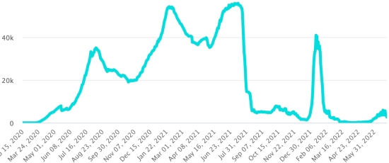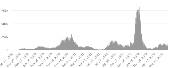 Vaccination : 594,85 millions de doses de vaccin injectées depuis le 14 décembre 2020 date de la première injection aux États-Unis (+130,000 doses). (Dernières données disponibles). RÉPUBLIQUE DOMINICAINE : Cas confirmés depuis le 1er mars 2020 : 603,256 cas (+902 en 24h), la veille (+982). Premier cas (1er mars 2020) Guérisons : 595,317 guérisons (+1,043 en 24h), la veille (+473) Taux national de Guérison : 98,68% (+) Décès : 4,383 décès (+0), la veille (+0) Taux de mortalité : 0,72% (=) Taux de positivité sur 4 semaines épidémiologiques : 12,03% (+) Cas actifs : (excluant décès et guérisons) 3,556 cas (-139 en 24h) la veille (+509) République Dominicaine : Nombre de cas confirmés quotidiens :