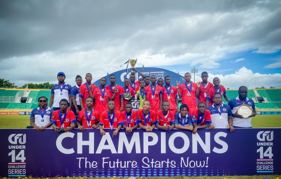 Dimanche 21 août 2022, dans le cadre du tournoi caraïbéen « CFU Challenge Series U-14 » où 22 équipes se sont affrontées en 49 matchs, nos Grenadiers (leader du Groupe 1B, affrontaient en finale Porto Rico, vainqueur du Groupe 1A sur la pelouse du stade Olympique Félix Sanchez de Santo Domingo. Confiant dans la capacité de ses protégés avec 4 victoires en autant de matchs 22 buts et aucun encaissé le coach Eddy Cesar pour cette finale avait mis sur pied un onze de départ solide pour affronter Porto-Rico. Onze de départ : #1 Charleston Domond (gardien) #3 Dave Bernard (défenseur) #5 Miguel Joseph (milieu, Capitaine) #10 Emerson Laissé (attaquant) #11 Franco Celestin (attaquant) #13 Jackson Saintilnord(attaquant) #14 Fedson Joissaint (milieu) #15 Jorgensen Jean Lehi (défenseur) #16 Alexander Kernisan (défenseur) #18 Djouby Jean Philippe (milieu) #20 Klivensky Noricène (défenseur) Nos jeunes Grenadiers donnés favori, non pas déçu. Dans cette finale, ils ont dominé Porto Rico et inscrit une 5e victoire à leur actif [2-0] dans ce tournoi, remportant pour la 2ème année consécutive le titre de Champion des Caraïbes.
