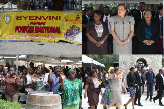 La Première Dame de la République, Mme Sophia Martelly, a ouvert officiellement hier mardi, le Forum national sur la Problématique des femmes haïtiennes, qui se déroule, du 6 au 8 Mars 2012, au Parc historique de la Canne-à-sucre, autour du thème : « La femme haïtienne à l’heure de la reconstruction nationale » Organisé par le Ministère à la Condition Féminine et aux Droits des Femmes (MCFDF), ce forum rassemble plusieurs milliers de femmes et de jeunes filles haïtiennes, dont six cent (600) déléguées départementales du MCFDF, des organisations et regroupements féminins, des bailleurs et représentants d’agences de coopération avec Haïti et des membres du Corps législatif, certains issus du Bloc parlementaire pour la décentralisation. L’objectif est d’inviter les femmes haïtiennes à réfléchir sur un ensemble de problèmes auxquels elles font face et qui handicapent leur lutte. Ce forum permettra d’aboutir à des propositions susceptibles de favoriser leur émancipation. Plusieurs centaines d’organisations de femmes, venues des dix départements d’Haïti, réfléchiront sur des thèmes liés à leur participation à la reconstruction d’Haïti, à leur citoyenneté, au leadership féminin en général, à la santé de la femme, moteur du bien-être familial, aux opportunités d’emploi et à leur essor économique dans la société haïtienne.