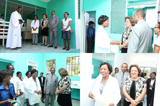 Sophia Martelly, la Première Dame d'Haïti, accompagnée du Dr Gabriel Timothée, Directeur Général du Ministère de la Santé Publique et de la Population (MSPP) a participé, vendredi à l’intégration des services, dans les locaux aménagés du Sanatorium, dans les hauteurs du Morne Lélio, à Carrefour-Feuilles. La cérémonie, s’est déroulée en présence des représentants d’institutions partenaires du projet, telles que le Comité international de la Croix-Rouge (CICR), l’Organisation internationale pour les migrations (OIM), le MSPP, la World Vision, le Food for the poor, le Healing Hands et la Freelung (Association française regroupant des pneumologues de la Savoie), et du personnel médical, a été l’occasion pour le staff directeur de l’institution de renouveler sa détermination à servir la communauté des tuberculeux, tout en se soumettant aux principes fondateurs du sanatorium : le traitement par la cure d’air, de lumière et de soleil et l’isolement des patients contagieux.