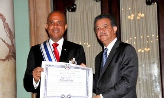 Le Président Martelly ému a déclaré « l’honneur que vous me faites de m’élever au rang de récipiendaire de la plus haute distinction octroyée par votre pays déborde ma personne immédiate et rejaillit sur le peuple qui m’a confié sa destinée. Je vous réitère l’expression de mon émotion à me voir honoré de la plus haute décoration dominicaine. Je vous assure que je saurai m’en montrer digne. Et je terminerai mes propos par ce cri vibrant qui part du plus profond de mon être : Que vive à jamais la fraternité haïtiano-dominicaine. » Après un dîner avec le Président Leonel Fernández, le Chef de l’Etat haïtien s’est rendu en fin de journée à l’Ambassade d’Haïti à Santo Domingo. Accueilli par des étudiants haïtiens, sa rencontre a porté sur l’éducation en général, sur la subvention des études et sur certains points tels que le visa des étudiants, leur position sociale et les dispositions des deux Etats pour pallier à certains problèmes qu’ils confrontent en République Dominicaine. HL/ HaïtiLibre