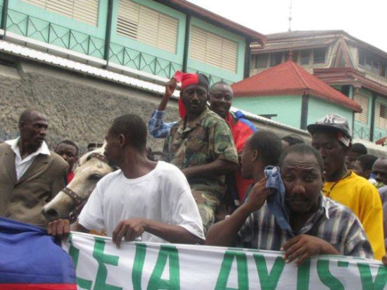 Dimanche, plusieurs milliers de partisans de l'ancien Président J.B Aristide ont envahi les rues de Port-au-Prince a l'occasion du 21ème anniversaire du coup d’État de 1991. Partis du quartier populaire de la Saline et des quartiers populaires du centre-ville, les manifestants ont parcouru plusieurs rues de la capitale avant de se diriger vers le Champs de Mars. Sous haute surveillance policière, les manifestants brandissant des photos de l'ancien Président Ariside et des cartons rouges, scandaient des slogans dénonçant le coût élevé de la vie et critiquaient vigoureusement la politique économique du gouvernement, qui, selon eux, n'a pas tenu ses promesses de campagne. D’autres scandaient « Non, jamais plus de coup d'État. Nous voulons un État démocratique en Haïti » À propos de la situation actuelle, marquée par l’augmentation du coût de la vie, Schiller Louisdor, membre de la direction de Fanmi Lavalas a demandé au gouvernement, de se ressaisir et d’apporter des solutions aux problèmes « Nous voulons dire au Président que nous n’acceptons pas cette situation de misère » insistant pour que les promesses de bien-être, faites durant la campagne électorale deviennent réalité. Toutefois, au-delà des partisans d’Aristide, d’autres manifestants plus radicaux, qui lançaient des slogans hostiles au Chef de l’État et des accusations de corruption à l’endroit de la famille du Président, étaient venu dans un tout autre but, celui de réclamer le départ du Président Martelly en compagnie entre autres : de l’ex-Sénateur Louis Gérald Gilles, de Paul Denis, l’ancien ministre de la justice, de l’activiste politique René Civil, du Sénateur Francky Exius, du député Arnel Bélizaire et de l'ancien Sénateur Turneb Delpé. En première ligne, monté sur un cheval le bicolore à la main, le farouche opposant du Président Martelly, le Sénateur Jean Charles Moïse, a promis de porter le flambeau de la mobilisation dans toutes les régions du pays et déclaré « Martelly a deux mois pour donner sa démission. Dans le cas contraire, il va en payer les conséquences. Je vais l’attaquer sur tous les fronts.»