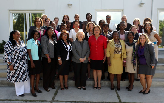 Lundi au Palais National, Mme Sophia Martelly, Première Dame d’Haïti, a rencontré, l’Ambassadrice itinérante des Etats-Unis pour les questions relatives aux femmes et aux filles dans le monde, Mme Melanne Verveer et plus de 20 autres femmes au cours d’une séance de travail. Cette rencontre, réalisée sur la traite des personnes, l’autonomie des femmes et l’entreprenariat féminin, s’est déroulée en présence, entre autres, de l’Ambassadrice américaine en Haïti, Madame Pamela White, de quelques femmes Ministres au niveau du Gouvernement, de femmes parlementaires et de l’Ambassadrice itinérante d’Haïti, Mme Danielle Saint-Lot. La Première Dame a profité de la visite de Mme Verveer, pour encourager les femmes leaders à travailler ensemble. Mme Martelly a également souligné l’engagement personnel du Président Martelly, dans l’implication des femmes au processus décisionnel à tous les niveaux de la société haïtienne rappelant que « 7 femmes Ministres, autour de la table ont été nommées par l'Administration Martelly-Lamothe. 5 femmes au Parlement ont remporté une victoire constitutionnelle, le quota de 30% pour les femmes à tous les niveaux de la vie nationale et en particulier dans l'administration publique, est respecté et même dépassé », s’est réjouie Mme Martelly.