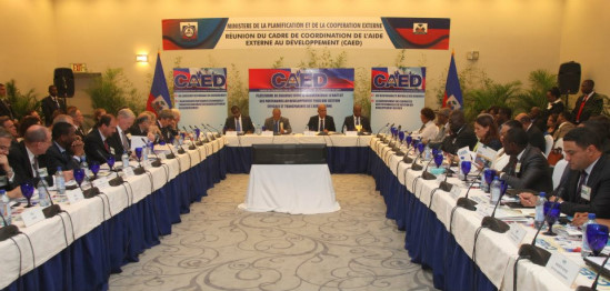 Lors de la cérémonie d'ouverture de la première réunion du Comité sur la Coordination de l'Aide Externe au Développement d'Haïti (CAED) qui s'est tenue hier vendredi, le Premier Ministre Laurent Lamothe a rallié les donateurs internationaux avec un appel à l'action et un plus grand engagement pour la reconstruction d'Haïti. Lamothe a noté avec force que « Le temps est venu d'agir ! » Présidé par le Premier ministre, le CAED est une initiative du gouvernement d'Haïti qui vise à coordonner plus efficacement les fonds de reconstruction et qui remplace la Commission Intérimaire pour la Reconstruction d'Haïti (CIRH). Composée de 32 membres (16 Haïtiens et 16 étrangers), ce nouveau mécanisme haïtien cherche à améliorer et à accélérer le le décaissement des fonds de reconstruction. Il sert aussi de plate-forme pour des discussions de haut niveau impliquant tous les acteurs nationaux et internationaux de développement. S'adressant à un large groupe qui comprenait l'ancien président Bill Clinton et des représentants des principaux organismes donateurs, Lamothe a fait remarquer que le moment était venu trois ans après le séisme de janvier 2010 pour les bailleurs de fonds de faciliter les procédures de décaissement qui permettront la reconstruction de s'accélérer et d'aller de l'avant. Les fonds des donateurs se sont concentrés principalement sur les secours d'urgence, et le moment est venu pour la construction de la Nation, a ajouté Lamothe. Clinton a également salué le leadership du président Martelly à travailler avec le Premier ministre et à organiser ce rassemblement.