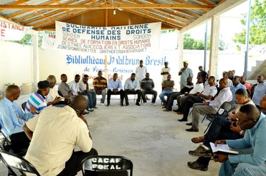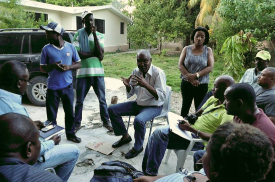 Le Ministre David Basile s’est également entretenu au local de la bibliothèque communautaire de Fond Parisien avec les autorités municipales, locales et des responsables d’organisme de défense des droits humains, travaillant à la frontière haitiano-dominicaine. Cette réunion s’est tenue autour des violences perpétrées à Neyba, qui auraient coûté la vie à plusieurs haïtiens, selon des propos rapporté [à ce moment là], par des haïtiens ayant fuit la région concernée. Au cours de cette rencontre le Ministre a échangé avec les responsables locaux pour faire un état de la situation et évaluer les premières réponses à apporter en termes de prises en charge précoces des réfugiés via la coordination de la Direction de la Protection Civile locale, la Direction des Affaires Politiques et des Droits Humains du MICT, ainsi que l’Office National de la Migration (ONM) qui a permis d’héberger les premiers groupes d’haïtiens affluant notamment par Malpasse. Le Ministre de l’Intérieur, au nom du Gouvernement Martelly-Lamothe, a condamné les attaques meurtrières commises par des citoyens dominicains à l’encontre de compatriotes haïtiens et à également affirmé que le Gouvernement en place prend l’engagement d’accompagner les familles des victimes afin d’obtenir justice pour ces frères et sœurs haïtiens. Il a par ailleurs exhorté les responsables locaux et les membres de la population réunis en la circonstance, à privilégier dans cette affaire, l’intelligence et la diplomatie afin d’éviter notamment des représailles de part et d’autres de la frontière entre les deux Républiques. Le Major David Bazile en a profité pour lancer un appel au calme et inviter les organisations de défense des droits de l’Homme à œuvrer auprès des autorités haïtiennes , en particulier du MICT, afin de calmer les concitoyens et concitoyennes indignés par cet incident regrettable survenu à Neyba.