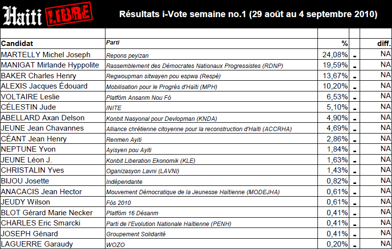 Haiti - i-Vote : Results first week 06/09/2010 14:05:29