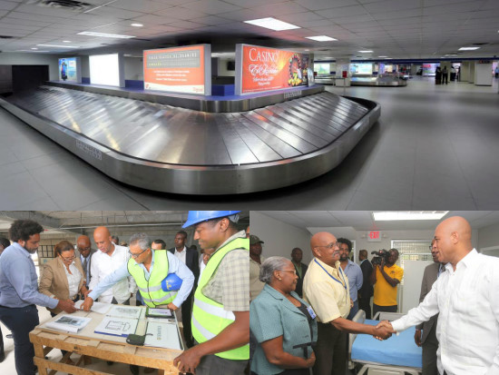 Wednesday, President Michel Martelly accompanied by Philippe Cinéas, State Secretary for Public Works, Pierre André Laguerre, Director General of the National Airport Authority (AAN) and his Counsel Gregory Mayard-Paul, paid a visit to Toussaint Louverture International Airport, to assess the rehabilitation work in progress since the summer of 2012. The Head of State has traveled the departure hall and arrival, and visited among others the infirmary fully rehabilitated, the conference room, the new departure lounge under construction, new booths, control rooms... President Martelly, also met with the staff of the institution as well as passengers, the main beneficiaries of this important work, which welcomed the great transformation made within the airport that now displays a new face.