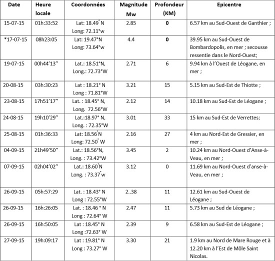 Haiti - Security : At least 13 micro-earthquakes in Haiti in the last quarter 2015 19/10/2015 11:12:33
