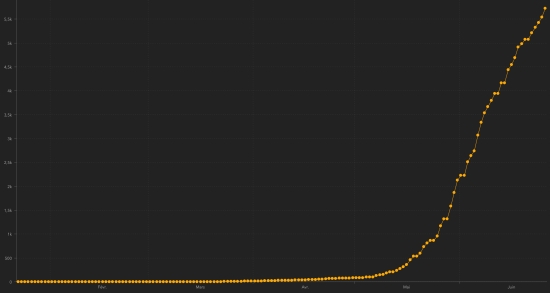 GLOBAL SITUATION : Saturday, June 27, 2020, the number of people infected worldwide with the Coridavirus Covid-19 since the start of the pandemic (Official source), amounted to 9,838,205 confirmed (+194,206 cases in 24h) , the day before: (+181,353). Number of contaminated countries 188 (unchanged) Bulletin from the day before : https://www.haitilibre.com/en/news-31129-haiti-covid-19-daily-report-june-26-2020.html Since the start of the pandemic 4,973,342 people have been cured of Covid-19 worldwide (+107,780 in 24 hours), the day before (+90,355) Since the start of the pandemic 495,079 people have died of Covid-19 worldwide (+5,024 in 24h), the day before (+6,594) The number of active cases worldwide (excluding deaths and cures) is currently 4,369,784 cases +81,402 in 24 hours (the day before: +84,404) Average cure rate in the world : 50.55% (+) Average mortality rate in the world : 5.03% (-) TOP 5 of the countries with the most active cases : 1st - USA: 1,671,989 cases (+37,654 in 24h), the day before (+31,106) 2nd - Brazil: 516,614 cases (+22,995 in 24h) the day before (+19,287) 3rd - United Kingdom: 265,976 cases (+1,195 in 24 hours), the day before (+954) 4th - Russia: 225,118 cases (-2,524 in 24h), the day before (-2,355) 5th - India: 197.387 cases (+7.924 in 24h), the day before (+3.949) TOP 5 of the countries with the most deaths : 1st - USA: 125,039 (+624 in 24h), the day before (+2,436) 2nd - Brazil: 55,961 deaths (+990 in 24 hours), the day before (+1,141) 3rd - United Kingdom 43,498 deaths (+184 in 24h), the day before (+149) 4th - Italy: 34,678 deaths (+0 in 24 hours), the day before (+34) 5th - France: 29,758 deaths (+26 in 48 hours), the day before (+11) DIASPORA : United States : Cases since the start of the epidemic : 2,467,837 cases (+45,525 in 24 hours), the day before (+40,943) Healings : 670,809 people (+7,247 in 24h), the day before (+7,401) National Healing Rate : 27.18% (-) Death : 125,039 (+624 in 24h), the day before (+2,436) Active cases (minus deaths and cures): 1,671,989 cases (+37,654 in 24 hours), the day before (+31,106) Canada : Cases since the start of the epidemic : 104,629 cases (+166 in 24h), the day before (+376) Healings : 66,869 people (+313 in 24h), the day before (+336) National Healing Rate : 63.91% (-) Death : 8,571death (+4 in 24h), the day before (+23) National mortality rate : 8.19% (-1) Active cases : (excluding death and recovery) 29,189 active cases (+162 in 24 hours), the day before (-93) France : Cases confirmed since the first case : 199,473 cases (+1,588 in 48 hours), the day before (+81) Healings : 75,639 people (+298 in 48 hours), the day before (+256) National Healing Rate : 37.92% (-) Death : 29,758 deaths (+26 in 48 hours), the day before (+11) Active cases : (excluding death and recovery) 94,076 cases (+1,019 in 48 hours), the day before (-217) Latin America and the Caribbean active cases : Brazil : 516,614 cases (+22,995 in 24h) the day before (+19,287) Peru : 103,619 cases (-4,997 in 24h), the day before (+4,102) Colombia : 46,715 cases (+5,596 in 24h), the day before (+400) Argentina : 35.008 (+2.134 in 24 hours), the day before (-1.065) 2 places ahead Chile : 34,861 cases (+27 in 24h), the day before (+242) Mexico : 25,786 cases (+257) in 24 hours), the day before (+1,493) Ecuador : 22,957 cases (+241 in 24h), the day before (+338) Dominican Republic : 12,695 cases (+475 in 24h), the day before (+286) Panama : 14,060 cases (+387 in 24h), the day before (+984) Haiti : 4,983 cases (+48), the day before (+10) French Guiana : 2,948 cases (+207 in 24h), the day before (+205) Jamaica : 137 cases (-11 in 24 hours), the day before (+1) Martinique : 139 cases (+6) Guadeloupe : 88 cases (+8) Cuba : 52 cases (-4 in 24 hours), the day before: (-9) Bahamas : 9 cases (unchanged) HAITI : Epidemiological situation : The Ministry of Public Health informs that 179 new cases of Covid-19 have been confirmed in Haiti (last report: +114, for a total of 5,722 cases throughout the national territory (40.7% women and 59.3% of men) since the first case (March 19, 2020 https://www.haitilibre.com/en/news-30319-haiti-health-origin-of-the-first-2-cases-of-covid-19-in-haiti.html ) . Deaths : 2 new deaths 1 in the West and 1 in the Artibonite, bringing the national total to 98. Healings :: 641 people (+129), the day before (+0) Active cases : (less death and recovery) 4,983 cases (+48), the day before (+10) Number of suspected cases investigated since March 19 : 11,506 cases (+131 in 24 hours), the day before: (+250) People hospitalized : 136 people (+8 in 24h), the day before (+9) Home quarantine : 3,139 people (+225 in 24h), the day before (+71) Number of tests : 5,722 tests Graph *: daily confirmed cases