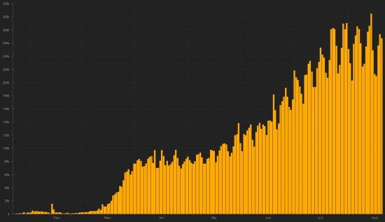WORLD SITUATION : Friday, August 21, 2020, the number of people infected worldwide by the Covid-19 coronavirus since the start of the pandemic (Official source), amounts to 22,703,716 confirmed cases (+275,777 in 24 hours) , the day before (+263,707). Number of contaminated countries 188 (unchanged) Bulletin of the day before : https://www.haitilibre.com/en/news-31587-haiti-covid-19-daily-report-august-20-2020.html Since the start of the pandemic 14,554,625 people (+205,152 in 24 hours) have been cured of Covid-19 around the world, the day before (+216,934) Since the start of the pandemic 794,187 people have died of Covid-19 around the world (+6,157 in 24 hours), the day before (+6,510) The number of active cases in the world (excluding deaths and recoveries) is currently 7,354,904 cases (+64,468 in 24 hours), the day before (+40,263) World: Number of daily confirmed cases