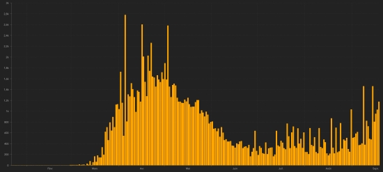 The rise in the number of new cases remains sustained and worried in Quebec, which represents nearly 47% of all confirmed cases in Canada and which has just closed 10% of all its schools due to Covid. France: Confirmed cases since the first case: 462,455 (+13,215 in 24h), previous (+10,593) Healings: 91,544 people (+734 in 24 hours), the day before (+505) National Healing Rate: 19.8% (-) Deaths: 31,180 deaths (+122 in 24 hours), the day before (+50) Active cases: (excluding death and recovery) 339,731 (+12,359 in 24 hours), The day before (+10,038) Latin America and the Caribbean active cases: Brazil: 461,851 cases (+15,334 in 24 hours), the day before (+7,004) Argentina: 133,716 (+810 in 24 hours), the day before (+4,273) Peru: 130,616 cases (11,780 in 24 hours), the day before (-540) Colombia: 111.349 (+6.526 in 24h), the day before (+2.002) Mexico: 34,042 cases (+ 1,253 in 24 hours), the day before (-513) Panama: 23.557 (-487 in 24 hours), the day before (-437) Dominican Republic: 24,519 cases (+232 in 24 hours), the day before (+130) Chile: 14,647 cases (-433 in 24 hours), the day before (-296) Ecuador: 16,022 cases (+1,857 in 24 hours), the day before (+699) French Guiana: 7,914 cases (+36 in 48h), previous (+15 in 24h) Guadeloupe: 3,209 cases (-13 in 24 hours), the day before (-5) Jamaica: 3,252 cases (+154 in 24 hours), the day before (+160) Haiti: 2016 (-5 in 24 hours), the day before (-42) Bahamas: 1,482 cases (update not available), the day before (+1) Martinique: 983 cases (-4 in 48h), previous (-1) Cuba: 644 (+50 in 24h), the day before (-42) HAITI: The Ministry reports 3 times more cases in 24 hours Epidemiological situation: According to the Ministry of Public Health, 44 new cases of Covid-19 (the day before +15) would have been confirmed in Haiti as of September 16, 2020 (latest partial data available) for a total of 8,600 case throughout the national territory since the first case (March 19, 2020 https://www.haitilibre.com/en/news-30319-haiti-health-origin-of-the-first-2-cases-of-covid-19-in-haiti.html ). Death: +1 in the Nord department. National total: 221 Healings: : 6,363 people (+48 in 24h), previous (+57) Healing rate: 73.99% (+) Active cases: (less deaths and cures) 2,016 (-5 in 24 hours) Imported cases: 152 cases since the reopening of airports and +43 since the last report dated July 9 (109) https://www.haitilibre.com/en/news-31348-haiti-flash-152-cases-imported-since-the-reopening-of-airports.html (Since then, this information is no longer made available) Suspicious cases investigated since March 19: 26,445 (+87 in 24 hours as of September 16) Cases tested since the start of the pandemic: 26,289 (+254 in 24 hours as of September 16.) People currently hospitalized: (information not available) People in intensive care currently: (information not available) People currently treated at home: (information not available) People in isolation: (information not available) Cases confirmed by department: West: 5821 (+15) North: 541 (+6) Artibonite: 514 (+6) Center: 446 (+2) South East 273 (+10) Northeast: 263 (unchanged) South: 233 (+3) North-West: 201 (+1) Grand'Anse 167 (+1) Nippes: 141 (unchanged) Location of cases: Ouest : 5,821 case (+15) Delmas : 1,409 cases (+) Port-au-Prince : 1,148 cases (+) Pétion-ville : 903 cases (+) Tabarre : 689 cases Croix-des-Bouquets : 582 cases (+) Carrefour : 441 case Petit-Goâve : 148 cases Cité Soleil : 94 cases Léogâne : 80 cases (+) Cabaret : 75 cases Kenskoff : 60 cases Archaie : 47 cases Gressier 45 cases Anse à Galet : 37 cases Cornillon : 16 cases Grand Goâve : 16 cases (+) Ganthier : 13 cases Thomazeau : 9 cases Fonds-Verettes : 6 cases Pointe à Raquette : 3 cases Nord : 541 case (+6) Cap Haïtien : 320 cases (+) Limbé : 44 cases (+) Pignon : 22 cases Milot : 22 cases Plaine du Nord : 17 cases Grande Rivière du Nord : 17 cases Borgne : 16 cases Plaisance du Nord : 16 cases Pilate : 15 cases Port Margot : 12 cases Limonade : 12 cases Quartier Morin : 12 cases (+) Acul du Nord : 8 cases Dondon : 3 cases Bahon : 2 cases Saint Raphaël : 2 cases (+) Artibonite : 514 cases (+6) Saint Marc : 166 cases (+) Verettes : 123 cases (+) Gonaïves : 116 cases Gros Morne : 23 cases Petite Rivière de l’Artibonite : 19 cases Marchand Dessalines : 16 cases Saint Michel : 13 cases (+) L’Estère : 12 cases Desdunes : 7 cases Marmelade : 6 cases Ennery : 6 cases Grande Saline : 3 cases La Chappelle : 2 cases Anse Rouge : 2 cases Centre : 446 cases (+2) Mirebalais : 160 cases (+) Hinche : 158 cases Boucan Carré : 31 case Lascaobas : 30 cases Belladère : 21 case Thomonde : 15 cases Saut-d’Eau 7 cases Savanette : 6 cases Cerca la Source : 6 cases Maissade : 5 cases Cerca Cavajal : 4 cases Thomassique : 3 cases Sud-Est : 273 cases (unchanged) Jacmel : 197 cases Côte-de-Fer : 15 cases Bainet : 13 cases Thiotte : 10 cases Anse-à-Pitre : 9 cases Vallée de Jacmel : 7 cases Marigot : 6 cases Belle Anse : 4 cases Cayes Jacmel : 2 cases Nord-Est : 263 (+10) Ouanaminthe : 85 cases (+) Caracol : 45 cases Fort Liberté : 38 cases Trou du Nord : 36 cases (+) Mombin Crochu 21 case (+) Terrier Rouge : 14cas (+) Mont Organisé : 9 cases (+) Ste-Suzanne : 5 cases Perches : 6 cases (+) Ferrier : 4 cases Carice : 5 cases (+) Capotille : 4 cases (+) Vallière : 1 case Sud : 233 cases (+3) Cayes : 129 cases (+) Aquin : 26 cases Saint-Louis du Sud : 12 cases Les Anglais : 10 cases Port-Salut : 9 cases Port à Piment : 8 cases Torbeck : 7 cases Camp-Perrin : 7 cases (+) Chardonnières : 6 cases Tiburon : 4 cases Coteaux : 4 cases Chantal : 2 cases St Jean du Sud : 2 cases Île-à Vache : 2 cases Cavaillon 2 cases Roche à Bateau : 1 case Maniche : 1 case Nord-Ouest : 201 case (+1) Port de Paix : 118 cases (+) Saint-louis du Nord : 26 cases Bombardopolis : 14 cases Môle Saint-Nicolas : 12 cases Jean Rabel : 12 cases Bassin Bleu : 6 cases La Tortue : 5 cases Chansolme : 4 cases Baie de Henne 2 cases Anse-à-Foleur : 2 cases Grand'Anse : 167 cases (+1) J