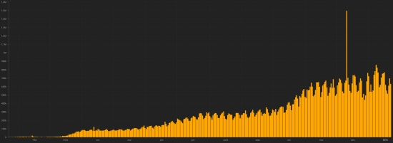 Vaccination: 56.58 million doses of vaccine injected on January 21, 2021 (+9.69 million in 48 hours) latest data available TOP 5 countries with the most active cases: (less deaths and recoveries) 1st - USA: 9,120,550 cases, (+56,693 in 24 hours), the day before (-1,996) 2nd - France: 2,744,923 (+21,206 in 24 hours), the day before (+25,048) 3rd - Spain: 2,251,288 cases (+43,983 in 24 hours), the day before (+41,112) 4th * - United Kingdom 1,862,359 cases (+21,414), the day before (+24,069) 5th - Brazil: 810,129 cases (+2,791 in 24 hours), the day before (+63,045) TOP 5 countries with the most deaths: 1st - USA: 410,349 deaths (+4.202 in 24 hours), the day before (+4.748) 2nd - Brazil: 214,147 deaths (+1,316 in 24 hours), the day before (+1,340) 3rd - India: 153,032 deaths (+163 in 24 hours), the day before (+151) 4th - Mexico: 146,174 deaths (+1,803 in 24 hours), the day before (+1,899) 5th * - United Kingdom: 94,580 deaths (+1,290 in 24 hours), the day before (+1,820) TOP 5 countries with the highest number of healings: 1st - USA: 15,100,991 cures (+132,275 in 24 hours), cure rate 61.31% (+) 2nd - India: 10,283,708 healings (+18,002 in 24h), cure rate 96.78% (+) 3rd - Brazil: 7,673,092 healings (+55,012 in 48h), cure rate 88.22% (-) 4th - Russia: 3,048,837 healings (+26,976 in 24h), cure rate 83.81% (+) 5th - Turkey: 2,290,032 healings (+6,113), cure rate 94.92% (=) DIASPORA: USA: Case since the first case (March 9, 2020): 24,631,890 cases (+193,170 in 24 hours), the day before (+184,582) Healings: 15,100,991 healings (+132,275 in 24 hours), the day before (+181,830) National Healing Rate: 61.31% (+) Deaths: 410,349 deaths (+4.202 in 24 hours), the day before (+4.748) Active cases (less deaths and recoveries): 9,120,550 cases, (+56,693 in 24 hours), the day before (-1,996) Canada: Cases since the start of the epidemic (January 25, 2020): 736,441 cases (+6,111 in 24 hours), the day before (+5,701) Healings: 652,246 people (+7,279 in 24 hours), the day before (+7,835) National Healing Rate: 88.57 (+) Deaths: 18,510 deaths (+94 in 24 hours), the day before (+127) National death rate: 2.51% (-) Active cases: (excluding death and cure) 65,685 cases (-1,262 in 24 hours), the day before (-2,261) Vaccination: 738,864 doses of vaccine injected since December 14, date of the first injection in Canada, (+87,725 in 48 hours as of January 21, 2021) latest data available. Canada: Number of daily confirmed cases