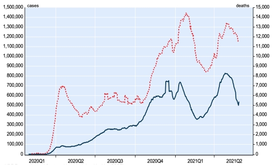New cases in blue numbers on the left - New deaths in red numbers on the right France: * Cases confirmed since the first case (January 24, 2020): 5,657,572 cases (+10,675 cases in 24 hours), the day before (+11,268) * Healings: 5,312,173 people (+8,459), the day before (+19,450) National Healing Rate: 93.89% (-) Death: 109,358 (+68 in 24 hours in hospitals +0 in EMS / EHPAD), the day before in total, (+125) * Active cases: (excluding death and cures) 236,041 (+2,148 in 24 hours), the day before (-8,307) Latin America and the Caribbean active cases (less deaths and recoveries): * Brazil: 1,140,762 cases (+18,542 in 24 hours), the day before (+23,103) * Argentina: 366,688 cases (-6,198 in 24 hours), the day before (+5,280) * Mexico: 263,183 cases (+1,217 in 24 hours), the day before (+411) * Peru: 161,784 cases (+3,872 in 24 hours), the day before (+5,339) * Colombia: 133,765 cases (+293 in 24 hours), the day before (+2,362) Dominican Republic: 48,088 cases (+1,038 in 24 hours) the day before (+1,135) * Chile: 45,063 cases (+414 in 24 hours), the day before (+3,296) * Ecuador: 37,831 cases (+1,499 in 24 hours), the day before (+785) * Jamaica: 22,566 cases (-83 in 24 hours), the day before (-68) * Guadeloupe: 14,059 cases (unavailable 8th day), the day before (unavailable) * French Guiana: 13,652 cases (unavailable), the day before (+154) * Martinique: 11,767 cases (unavailable 4th day), the day before (+ unavailable) * Panama: 6,276 cases (+84 in 24 hours), the day before (+134) advance by one place * Cuba: 6,234 cases (-271 in 24 hours), the day before (-106) Haiti: 1,505 cases (+81 in 24 hours), the day before (+109) * Bahamas: 874 cases (-70 in 24 hours), the day before (+59) HAITI: Epidemiological situation: According to the Ministry of Public Health, 93 new cases of Covid-19 were confirmed in Haiti on May 24, 2021 (latest partial data available) for a total of 14,351 cases confirmed throughout the national territory since the first case (March 19, 2020 https://www.haitilibre.com/en/news-33843-haiti-covid-19-haiti-special-report-435.html). Last update (130 new cases on May 23, 2021) Healings: 12,537 people (+10 in 24 hours) Cure rate: 87.35% (-) Deaths: 309 deaths, (+2 in 24 hours) Mortality rate: 2.15% (=) Active cases: (less deaths and recoveries) 1,505 cases (+81 in 24 hours), the day before (+109) Imported cases: 152 cases since the reopening of airports and +43 since the last report dated July 9 (109 cases) https://www.haitilibre.com/en/news-31348-haiti-flash-152-cases-imported-since-the-reopening-of-airports.html (Since then, this information is no longer made available) Suspected cases since March 19: 66,181 cases (+352 in 24 hours) update May 23, latest data available. Cases tested since the start of the pandemic: 70,672 cases (+265 in 24 hours) update May 24, latest data available. Note that the very low number of people tested does not statistically make it possible to make a representative estimate of the cases of Covid-19 in Haiti. People hospitalized: 2,156 since the start of the epidemic (+24 in 24 hours) Update May 24, 2021, latest data available. People in intensive care: (not available) Person in isolation: 1,423 as of May 22 (latest data available) People currently treated at home: 1,883 as of May 22, latest data available). Cases confirmed by department: West: 10.224 (+38) North: 890 (+9) Center: 764 (+14) Artibonite: 739 (+10) North-East: 389 (+1) South-East: 326 (+15) South: 306 (unchanged) North-West: 299 (+2) Grand'Anse: 249 (+4) Nippes: 165 (unchanged) UNITED STATES: Epidemiological situation: United States: * Case since the first case (March 9, 2020): 34,035,318 cases (+12,661 in 24 hours), the day before (+22,977) * Healings: 27,818,961 healings (+51,921 in 24h), the day before (+65,161) National Healing Rate: 81.73% (+) * Death: 609,421 deaths (+460 in 24 hours), the day before (+1,235) National death rate: 1.79% (+) * Active cases (less deaths and recoveries): 5,606,936 cases, (-39,720 in 24 hours), the day before (-43,419) * Tests: 478,917,136 people tested since the first case. USA: Number of daily confirmed cases: