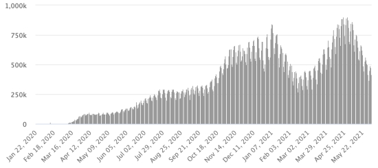 New cases in blue numbers on the left - New deaths in red numbers on the right Vaccination: 297.72 million doses of vaccine injected since December 14, 2020, the date of the first injection in the United States (+810,000 doses injected, in 24 hours). Updated 3 June 2021 last available data). New York State: * Cases since the start of the epidemic (March 1, 2020): 2,157,246 cases (+976 in 24 hours), the day before (+905) * Healings: 1,743,945 healings (+6,544 in 24h) the day before (+6,306) Healing rate: 80.84% (+) * Death: 53,706 deaths (+52 in 24 hours), the day before (+16) Death rate: 2.48% (=) * Active cases 359,595 cases (-5,620 in 24 hours), the day before (-5,417) * Tests: 56,364,498 people tested since the first case. New York State: Number of daily confirmed cases: