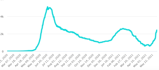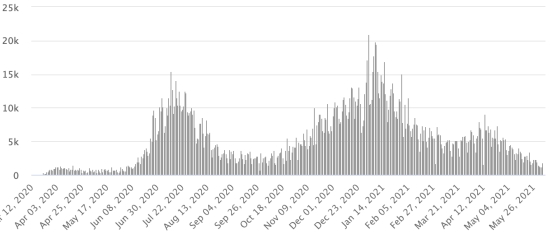 Imported cases: 152 cases since the reopening of airports and +43 since the last report dated July 9 (109 cases) https://www.haitilibre.com/en/news-31348-haiti-flash-152-cases-imported-since-the-reopening-of-airports.html (Since then, this information is no longer made available) Suspected cases since March 19: 68,658 cases (+426 in 24 hours) update May 31, latest data available. Cases tested since the start of the pandemic: 75,114 cases (+622 in 24 hours) update May 31, latest data available. Note that the very low number of people tested does not statistically make it possible to make a representative estimate of the cases of Covid-19 in Haiti. By way of comparison, our Dominican neighbors have so far totaled nearly 1.6 million tests carried out Cases confirmed by department: West: 11,088 (+106) North: 940 (+5) Center: 814 (+5) Artibonite: 766 (+5) North-East: 398 (+1) South-East: 350 (+13) South: 328 (+11) North-West: 303 (+2) Grand'Anse: 281 (+5) Nippes: 167 (unchanged) UNITED STATES: Epidemiological situation: United States: * Case since the first case (March 9, 2020): 34,204,374 cases (+12,351 in 24 hours), the day before (+17,271) * Healings: 28,103,491 healings (+48,496 in 24 hours), the day before (+29,420) National Healing Rate: 82.16% (+) * Death: 612,203 deaths (+37 in 24 hours), the day before (+629) National death rate: 1.78% (-) * Active cases (less deaths and recoveries): 5,488,680 cases, (-36,108 in 24 hours), the day before (+12,778) * Tests: (486,286,209) people tested since the first case. USA: Number of daily confirmed cases: