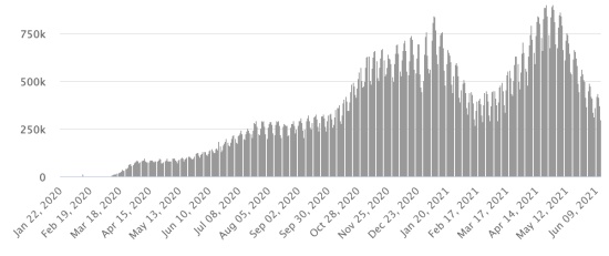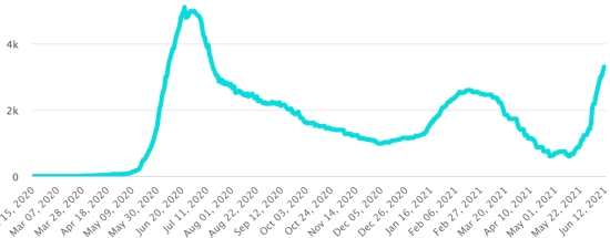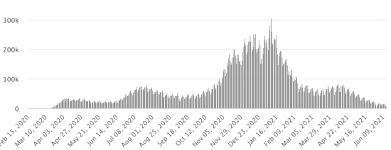 Imported cases: 152 cases since the reopening of airports and +43 since the last report dated July 9, 2020 (109 cases) https://www.haitilibre.com/en/news-31348-haiti-flash-152-cases-imported-since-the-reopening-of-airports.html (Since then, this information is no longer made available) Cases tested since the start of the pandemic: 80,138 cases (+1,719 in 48 hours) update 9 June 2021 (latest data available). Note that the very low number of people tested does not statistically make it possible to make a representative estimate of the cases of Covid-19 in Haiti. By way of comparison, our Dominican neighbors carried out in total as of June 12, 2021 more than 1.6 million tests (1,622,856) Cases confirmed by department: West: 11.902 (+260) North: 971 (+5) Center: 852 (+10) Artibonite: 801 (+15) North-East: 458 (+5) South-East: 385 (+8) South: 380 (+23) North West: 304 (+1) Grand'Anse: 325 (+18) Nippes: 183 (+10) UNITED STATES: Epidemiological situation: United States: * Case since the first case (March 9, 2020): 34,321,158 cases (+5,285 in 24 hours), the day before (+9,427) * Healings: 28,400,132 healings (+18,509 in 24 hours), the day before (+35,299) National Healing Rate: 82.74% (+) * Death: 615,053 deaths (+98 in 24 hours), the day before (+217) National death rate: 1.79% (=) * Active cases (less deaths and recoveries): 5,305,973 cases, (-13,322 in 24 hours), the day before (-26,089) * Tests: 494,349,661 people tested since the first case. USA: Number of daily confirmed cases: