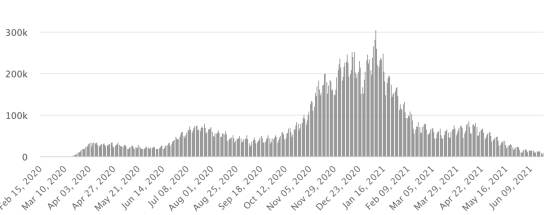 Cases tested since the start of the pandemic: 85,122 cases (+1,835 in 48 hours) update June 18, 2021 (latest data available). Note that the very low number of people tested does not statistically make it possible to make a representative estimate of the cases of Covid-19 in Haiti. By way of comparison, our Dominican neighbors carried out in total as of June 20, 2021 more than 1.66 million tests (1,667,342) Cases confirmed by department: West: 12,688 (+209) North: 1.017 (+5) Center: 912 (+12) Artibonite: 829 (+16) North-East: 499 (+15) South-East: 415 (+11) South: 460 (+22) North-West: 321 (+10) Grand'Anse: 371 (+28) Nippes: 199 (+11) UNITED STATES: Epidemiological situation: United States: * Case since the first case (March 9, 2020): 34,419,838 cases (+13,837 in 24 hours), the day before (+4,289) * Healings: 28,767,507 healings (+56,192 in 24 hours), the day before (+16,472) National Healing Rate: 83.57% (+) * Death: 617,463 deaths (+297 in 24 hours), the day before (+83) National death rate: 1.79% (=) * Active cases (less deaths and recoveries): 5,034,868 cases, (-42,652 in 24 hours), the day before (-12,266) * Tests: 500,148,116 people tested since the first case. USA: Number of daily confirmed cases: