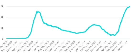 Active cases: (less deaths and recoveries) 6,012 cases (+63 in 48h), previous (+39) Haiti: Trend of active cases since the start of the pandemic: