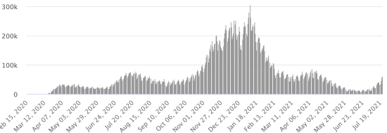 Most affected municipalities in the West (2021): Delmas: 1.806 (+3); Pétion ville 1,594 (+2); Port-au-Prince 992 (+3); Tabarre 781 (+4); Croix-des-Bouquets 721 (+2); Carrefour 361 (+0) Cases tested since the start of the pandemic: 96,903 cases (+354 in 24 hours update July 15, 2021 (latest data available). Note that the very low number of people tested does not statistically allow us to a representative estimate of Covid-19 cases in Haiti. Confirmed cases by department (2021): West: 6.798 (2020: 6.945) North: 429 (2020: 677) Center: 532 (2020: 508) Artibonite: 429 (2020: 593) Northeast: 250 (2020: 314) Southeast: 257 (2020: 274) South: 392 (2020: 262) Northwest: 141 (2020: 229) Grand'Anse: 307 (2020: 176) Nippes: 100 (2020: 149) Cumulative deaths by department (2021): West: 174 (2020: 104) North: 29 (2020: 34) Center: 15 (2020: 13) Artibonite: 10 (2020: 39) Northeast: 4 (2020: 6) South: 27 (2020: 6) Southeast: 6 (2020: 9) Northwest: 6 (2020: 12) Grand'Anse: 1 (2020: 13) Nippes: 10 (2020: 5) Distribution of deaths by age (2020 and 2021): 0-9 years: 12 10-19 years: 6 20-29 years: 20 30-39 years: 32 (+1) 40-49 years: 55 50-59 years: 92 (+1) 60-69 years: 111 (+1) 70-79 years: 116 (+1) 80 years and over: 79 Vaccination: 157 doses injected on July 22, 2021. 1.857 doses of vaccine have been injected since July 16, 2021, date of the first injection https://www.haitilibre.com/en/news-34253-haiti-covid-first-injections-of-vaccines.html . Latest data available. DIASPORA: Epidemiological situation: USA: * Case since the first case (March 9, 2020): 35,213,594 cases (+67,118 in 24 hours), the day before (+64,757) * Healings: 29,478,173 healings (+19,770 in 24 hours), the day before (+23,232) National Healing Rate: 83.71% (-) * Death: 626,172 deaths (+364 in 24 hours), the day before (+445) National death rate: 1.77% (-) * Active cases (less deaths and recoveries): 5,109,249 cases, (+46,984 in 24 hours), the day before (+41,080) * Tests: 520,411,488 people tested since the first case. USA: Number of daily confirmed cases: