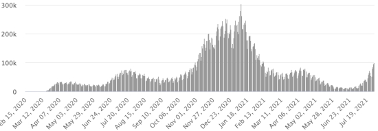 WORLD SITUATION: Epidemiological situation: Saturday July 31, 2021 the number of people infected worldwide by the Covid-19 coronavirus since the start of the pandemic (Official source), amounts to 198,047,247 cases (+647,926 in 24 hours), the standby (+ 675,473) Number of contaminated countries 192 (unchanged) * Healings: 178,941,631 people were cured of Covid-19 worldwide (+398,285 in 24 hours), the day before (+410,855) * Deaths: 4,224,637 people died from Covid-19 worldwide (+9,515 in 24 hours), the day before (+11,169) * Active cases (less deaths and recoveries) in the world is currently 14,880,979 cases (+240,126 in 24 hours), the day before (+253,449) Average cure rate in the world: 90.35% (-) Average death rate in the world: 2.13% (=) World: Number of daily confirmed cases: