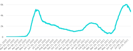 Most affected municipalities in the West (2021): Delmas: 1.856 (+3); Pétion ville 1,627 (+0); Port-au-Prince 1.031 (+0); Tabarre 801 (+1); Croix-des-Bouquets 782 (+2) Cases tested since the start of the pandemic: 102,270 cases (+328 in 24 hours, update 2 August 2021 (latest data available). Note that the very low number of people tested does not statistically allow us to a representative estimate of Covid-19 cases in Haiti By comparison, the neighboring Republic has carried out more than 1.8 million tests on its population since the start of the epidemic. Confirmed cases by department (2021): West: 7.066 (2020: 6.945) North: 439 (2020: 677) Center: 574 (2020: 508) Artibonite: 501 (2020: 593) Northeast: 256 (2020: 314) Southeast: 290 (2020: 274) South: 458 (2020: 262) Northwest: 203 (2020: 229) Grand'Anse: 356 (2020: 176) Nippes: 119 (2020: 149) Cumulative deaths by department (2021): West: 185 (2020: 104) North: 30 (2020: 34) Center: 23 (2020: 13) Artibonite: 17 (2020: 39) Northeast: 4 (2020: 6) South: 32 (2020: 6) Southeast: 11 (2020: 9) Northwest: 7 (2020: 12) Grand'Anse: 5 (2020: 13) Nippes: 14 (2020: 5) Distribution of deaths by age (since the start of the epidemic): 0-9 years: 13 10-19 years: 6 20-29 years: 21 30-39 years: 35 (+1) 40-49 years: 57 50-59 years: 96 60-69 years: 125 (+1) 70-79 years: 130 (+1) 80 years and over: 86 Vaccination: 13.733 (+1.432 in 24 hours) doses of “Spikevax” vaccine (official name since June 21, 2021) from the MODERNA Laboratory have been injected in total since July 16, 2021, date of the first injection https://www.haitilibre.com/en/news-34253-haiti-covid-first-injections-of-vaccines.html. Update 5 August July 2021, latest data available. List of the 32 vaccination centers opened by department: https://www.icihaiti.com/en/news-34419-icihaiti-epidemic-list-of-32-vaccination-sites-opened-by-department.html DIASPORA: Epidemiological situation: USA: * Case since the first case (March 9, 2020): 36,518,948 cases (+71,825 in 24 hours), the day before (+145,379) * Healings: 29,851,803 healings (+17,331 in 24 hours), the day before (+28,879) National Healing Rate: 81.874% (-) * Death: 632,987 deaths (+346 in 24 hours), the day before (+762) National death rate: 1.73% (-) * Active cases (less deaths and recoveries): 6,034,158 cases, (+54,158 in 24 hours), the day before (+115,738) * Tests: 543,729,581 people tested since the first case USA: Number of daily confirmed cases: