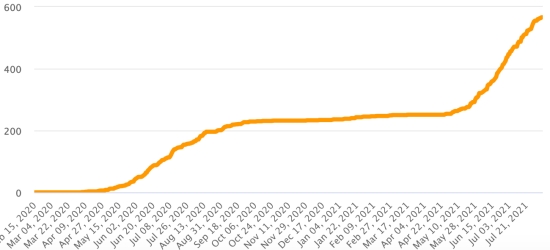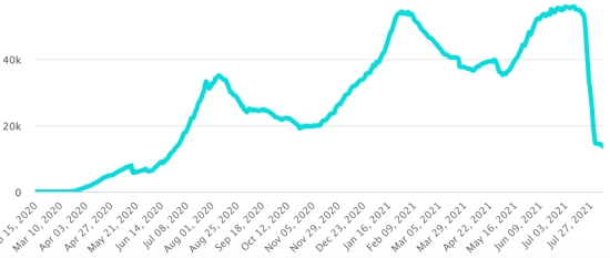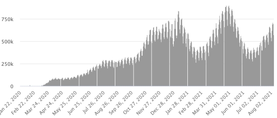 Vaccination: 350.63 million doses of vaccine injected since December 14, 2020, date of the first injection in the United States (840,000 doses injected, in 24 hours). Update August 7, latest data available). DOMINICAN REPUBLIC: Cases confirmed since March 1, 2020: 344,151 cases (+322 in 24 hours) the day before (+317). First case (March 1, 2020) https://www.haitilibre.com/en/news-30165-haiti-flash-first-case-of-covid-19-in-the-dominican-republic.html Healings: 326,501 healings since March 1 (+628 in 24 hours), the day before (+696) National Healing Rate: 94.87% (+) Death: 3,974 deaths (+1 in 24 hours), the day before (+0) Mortality rate: 1.15% (=) Active cases: (excluding death and recovery) 13,676 cases (-307 in 24 hours) the day before (-379) Dominican Republic: Trend of active cases: (less healings and deaths)