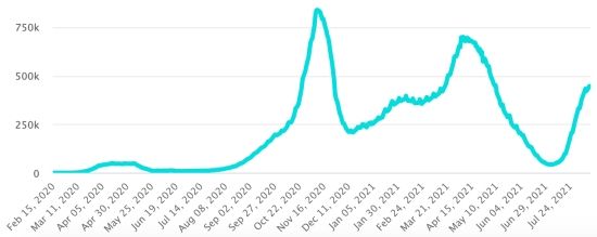 Vaccination: 354.78 million doses of vaccine injected since December 14, 2020, the date of the first injection in the United States (920,000 doses injected, in 24 hours). Update 12 August last data available).