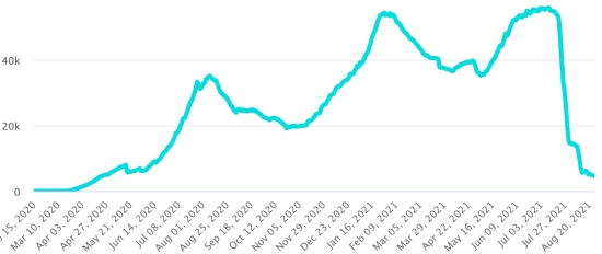Vaccination: 364.84 million doses of vaccine injected since December 14, 2020, the date of the first injection in the United States (920,000 doses injected, in 24 hours). Update 25 August last data available). DOMINICAN REPUBLIC: Cases confirmed since March 1, 2020: 348,566 cases (+317 in 24 hours) the day before (+223). First case (March 1, 2020) https://www.haitilibre.com/en/news-30165-haiti-flash-first-case-of-covid-19-in-the-dominican-republic.html Healings: 339,881 healings since March 1 (+280 in 24 hours), the day before (+292) National Healing Rate: 97.50% (-) Death: 4,006 deaths (+4 in 24 hours), the day before (+8) Mortality rate: 1.14% (=) Positivity rate over 4 epidemiological weeks: 5.35% (+) Active cases: (excluding death and cures) 4,679 cases (+33 in 24 hours) the day before (-76) TOP 5 provinces with the most new cases in 24 hours: Santiago: +59 cases Santo-Domingo: +45 cases Ouerto Plata: +36 cases National District: +33 cases La Vega: +25 cases Dominican Republic: Trend of active cases: (less healings and deaths)