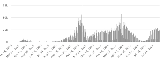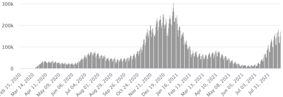Most affected municipalities in the West (2021): Delmas: 1.893 (+7); Pétion ville 1,659 (+8); Port-au-Prince 1.052 (+1); Tabarre 829 (+7); Croix-des-Bouquets 819 (+14) Cases tested since the start of the pandemic: 107,702 cases (+1,237 in 72 hours) update August 19, 2021 last available data. Note that the very low number of people tested does not statistically make it possible to make a representative estimate of the cases of Covid-19 in Haiti. By comparison, the neighboring Republic has carried out nearly 2 million tests on its population since the start of the epidemic. Confirmed cases by department (2021): West: 7,253 (2020: 6,945) North: 454 (2020: 677) Center: 640 (2020: 508) Artibonite: 527 (2020: 593) Northeast: 276 (2020: 314) Southeast: 317 (2020: 274) South: 479 (2020: 262) Northwest: 234 (2020: 229) Grand'Anse: 384 (2020: 176) Nippes: 142 (2020: 149) Cumulative deaths by department (2021): West: 194 (2020: 104) North: 30 (2020: 34) Center: 25 (2020: 13) Artibonite: 20 (2020: 39) Northeast: 4 (2020: 6) South: 32 (2020: 6) Southeast: 11 (2020: 9) Northwest: 7 (2020: 12) Grand'Anse: 5 (2020: 13) Nippes: 15 (2020: 5) Distribution of deaths by age (since the start of the epidemic): 0-9 years: 13 10-19 years: 6 20-29 years: 22 (+1) 30-39 years: 35 40-49 years: 61 50-59 years: 99 60-69 years: 127 70-79 years: 132 80 years and over: 89 Vaccination: 27,071 (+962 in 48 hours) doses of “Spikevax” vaccine (official name since June 21, 2021) from the MODERNA Laboratory have been injected in total since July 16, 2021, date of the first injection. 2,446 people fully vaccinated with 2 doses. Update 23 August 2021, last available data. List of 51 open vaccination centers (and opening hours) by department: https://www.icihaiti.com/en/news-34544-icihaiti-covid-list-of-51-vaccination-centers-opened-by-department.html (update August 20, 2021) DIASPORA: Epidemiological situation: USA: * Case since the first case (March 9, 2020): 39,157,249 cases (+188,324 in 24 hours), the day before (+154,329) * Healings: 30,678,283 healings (+59,639 in 24h), the day before (+48,415) National Healing Rate: 78.34% (-) * Death: 649,680 deaths (+1,519 in 24 hours), the day before (+1,494) National death rate: 1.65% (-) * Active cases (less deaths and recoveries): 7,829,286 cases (+127,166 in 24 hours), the day before (+104,420) * Tests: 573,651,524 people tested since the first case USA: Number of daily confirmed cases: