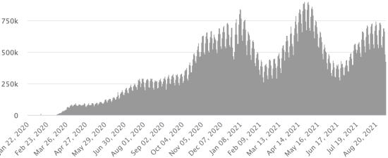 WORLD SITUATION: Epidemiological situation: Tuesday, September 7, 2021 the number of people infected worldwide by the Covid-19 coronavirus since the start of the pandemic (Official source), amounted to 222,031,833 cases (+429,274 in 24 hours), the standby (+423,035) Number of contaminated countries: 192 * Healings: 198,649,390 people were cured of Covid-19 worldwide (+541,164 in 24 hours) the day before (+437,214) * Deaths: 4,589,467 people died from Covid-19 around the world (+6,484 in 24 hours), the day before (+6,237) * Active cases (less deaths and recoveries) in the world is currently 18,792,976 cases (-118,374 in 24 hours), the day before (-20,416) Average cure rate in the world: 89.46% (+) Average death rate in the world: 2.06% (=) World: Number of daily confirmed cases: