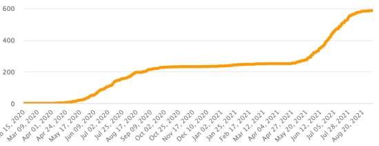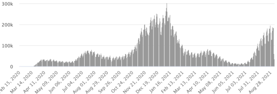 Vaccination: 5.52 billion doses of vaccine injected (+30 million doses injected in 24 hours. Update September 6, 2021 (latest data available). HAITI: Epidemiological situation: If we are to believe the Ministry of Public Health, +25 new cases in 24 of Covid-19 and its variants were confirmed in Haiti on September 1, 2021 (latest partial data available) for a total of 21,094 cases confirmed throughout the national territory (46.2% of women and 53.8% of men), since the first case (March 19, 2020 https://www.haitilibre.com/en/news-30319-haiti-health-origin-of-the-first-2-cases-of-covid-19-in-haiti.html). Previous update (+92 cases on August 29, 30 and 31). 3rd wave: The total for the 3rd wave (beginning of May 10, 2021) stands at 7,788 confirmed cases and 317 deaths. . Updated September 1, 2021. Healings: 18,597 (+96 in 24h) Healing rate: 88.16% (+) Deaths: 588 +0 deaths in 24 hours () Death rate: 2.78% (-) Haiti: Trend in deaths: