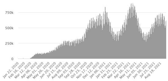 Cases tested since the start of the pandemic: 113,815 cases (+420 in 48 hours) update 6 September 2021 latest data available. Note that the very low number of people tested does not statistically make it possible to make a representative estimate of the active cases of Covid-19 in Haiti. By comparison, the neighboring Republic has carried out nearly 2 million tests on its population since the start of the epidemic. Most affected municipalities in the West (2021): Delmas: 1.937 (+6); Pétion ville 1,695 (+1); Port-au-Prince 1,084 (+2); Tabarre 846 (+0); Croix-des-Bouquets 846 (+1) Confirmed cases by department (2021): West: 7.474 (2020: 6.945) North: 464 (2020: 677) Center: 667 (2020: 508) Artibonite: 558 (2020: 593) Northeast: 284 (2020: 314) Southeast: 340 (2020: 274) South: 486 (2020: 262) Northwest: 250 (2020: 229) Grand'Anse: 398 (2020: 176) Nippes: 144 (2020: 149) Cumulative deaths by department (2021): West: 196 (2020: 104) North: 32 (2020: 34) Center: 26 (2020: 13) Artibonite: 21 (2020: 39) Northeast: 5 (2020: 6) South: 32 (2020: 6) Southeast: 11 (2020: 9) Northwest: 10 (2020: 12) Grand'Anse: 5 (2020: 13) Nippes: 16 (2020: 5) Distribution of deaths by age (since the start of the epidemic): 0-9 years: 13 10-19 years: 6 20-29 years: 22 30-39 years: 37 (+2) 40-49 years: 62 50-59 years: 101 60-69 years: 130 (+2) 70-79 years: 134 (+2) 80 years and over: 90 (+1) Vaccination: 45,860 (+10,460 in 7 days) doses of “Spikevax” vaccine (official name since June 21, 2021) from the MODERNA Laboratory have been injected in total since July 16, 2021, date of the first injection. 12,225 people are fully vaccinated (2 doses). Update September 7, August 2021, latest data available. List of 62 open vaccination centers (and opening hours) by department: (updated September 6, 2021) DIASPORA: Epidemiological situation: USA: * Case since the first case (March 9, 2020): 41,741,693 cases (+180,537 in 24 hours), the day before (+163,569) * Healings: 31,820,994 healings (+76,035 in 24h), the day before (+77,452) National Healing Rate: 76.23% (-) * Death: 677,017 deaths (+2,470 in 24 hours), the day before (+3,364) National death rate: 1.62% (=) * Active cases (less deaths and recoveries): 9,243,682 cases (+102,032 in 24 hours), the day before (+82,753) * Tests: 602,794,033 people tested since the first case USA: Number of confirmed cases daily :