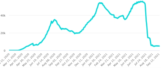 Cases tested since the start of the pandemic: 115,563 cases (+596 in 48 hours) update September 11, 2021 latest data available. Note that the very low number of people tested does not statistically make it possible to make a representative estimate of the active cases of Covid-19 in Haiti. By comparison, the neighboring Republic has carried out more than 2 million tests on its population since the start of the epidemic. Most affected municipalities in the West (2021): Delmas: 1.964 (+13); Pétion ville 1,709 (+4); Port-au-Prince 1,090 (+4); Tabarre 851 (+2); Croix-des-Bouquets 859 (+6) Confirmed cases by department (2021): West: 7.544 (2020: 6.945) North: 467 (2020: 677) Center: 678 (2020: 508) Artibonite: 568 (2020: 593) Northeast: 284 (2020: 314) Southeast: 350 (2020: 274) South: 493 (2020: 262) Northwest: 259 (2020: 229) Grand'Anse: 399 (2020: 176) Nippes: 149 (2020: 149) Cumulative deaths by department (2021): West: 196 (2020: 104) North: 32 (2020: 34) Center: 26 (2020: 13) Artibonite: 21 (2020: 39) Northeast: 5 (2020: 6) South: 32 (2020: 6) Southeast: 11 (2020: 9) Northwest: 10 (2020: 12) Grand'Anse: 5 (2020: 13) Nippes: 17 (2020: 5) Distribution of deaths by age (since the start of the epidemic): 0-9 years: 13 10-19 years: 6 20-29 years: 22 30-39 years: 37 40-49 years: 62 50-59 years: 102 60-69 years: 130 70-79 years: 134 80 years and over: 90 Vaccination: 50,283 (+4,423 in 2 days) doses of “Spikevax” vaccine (official name since June 21, 2021) from the MODERNA Laboratory have been injected in total since July 16, 2021, date of the first injection. 14,382 people are fully vaccinated (2 doses). Update 9 September August 2021, latest data available. List of 68 vaccination centers open in Haiti (and hours) by department: (updated September 13, 2021) DIASPORA: Epidemiological situation: USA: * Case since the first case (March 9, 2020): 42,288,205 cases (+148,102 in 24 hours), the day before (+286,741) * Healings: 32,176,784 healings (+113,879 in 24 hours), the day before (+191,037) National Healing Rate: 76.08% (=) * Death: 682,341 deaths (+2,067 in 24 hours), the day before (+2,286) National death rate: 1.61% (=) * Active cases (less deaths and recoveries): 9,429,080 cases (+32,156 in 24 hours), the day before (+93,418) * Tests: 611,216,031 people tested since the first case USA: Daily confirmed case trend: