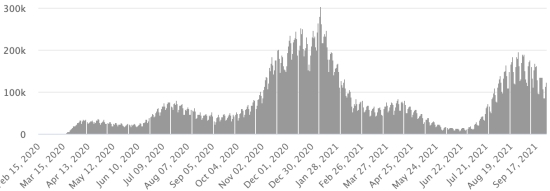 WORLD SITUATION: Epidemiological situation: Thursday, September 30, 2021, the number of people worldwide infected with the Covid-19 coronavirus since the start of the pandemic (Official source), amounts to 234,111,302 cases (+516,565 in 24 hours), the standby (+461,581) Number of contaminated countries: 221 * Healings: 210,912,513 people were cured of Covid-19 worldwide (+493,809 in 24 hours), the day before (+553,473) * Deaths: 4,788,880 people died from Covid-19 worldwide (+9,132 in 24 hours), the day before (+9,491) * Active cases (less deaths and recoveries) in the world is currently 18,409,909 cases (+13,624 in 24 hours), the day before (-101,383) Average cure rate in the world: 90.09% (+) Average death rate in the world: 2.04% (=) World: Number of daily confirmed cases: