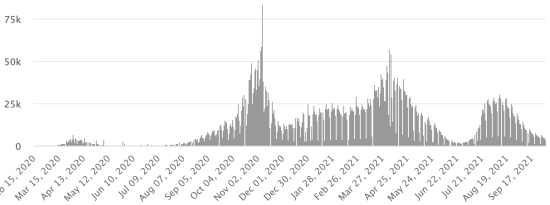 Vaccination: 395.93 million doses of vaccine injected since December 14, 2020, the date of the first injection in the United States (1.24 million doses injected, in 24 hours). Update 3 October 2021 (latest data available). DOMINICAN REPUBLIC: Cases confirmed since March 1, 2020: 360,830 cases (+573 in 24 hours) the day before (+660). First case (March 1, 2020) https://www.haitilibre.com/en/news-30165-haiti-flash-first-case-of-covid-19-in-the-dominican-republic.html Healings: 350,748 healings since March 1 (+650 in 24 hours), the day before (+330) National Healing Rate: 97.20% (+) Death: 4,055 deaths (+0 in 24 hours), the day before (+6) Mortality rate: 1.12% (=) Positivity rate over 4 epidemiological weeks: 7.28% (-) Active cases: (excluding death and recovery) 6,027 cases (-77 in 24 hours) the day before (+324) TOP 5 provinces with the most new cases in the last 24 hours: Santiago: +120 cases (-) Santo Domingo: +73 cases (-) National District: +45 cases (-) San Crístobal: +44 cases (-) La Vega: 39 cases (-) Dominican Republic: Number of daily confirmed cases: