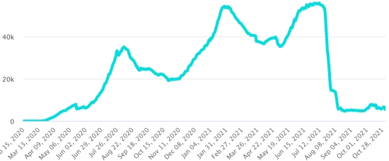 Vaccination: 423.94 million doses of vaccine injected since December 14, 2020, the date of the first injection in the United States (930,000 doses injected in 24 hours). Update November 2, 2021 (last available data).