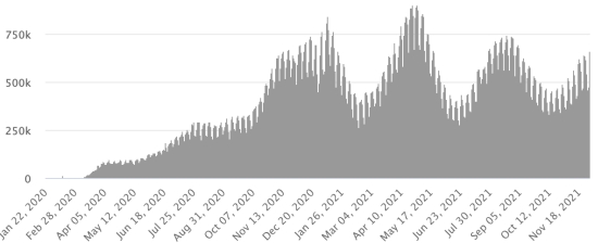 WORLD SITUATION: Epidemiological situation: Wednesday, December 1, 2021, the number of people infected worldwide with the Covid-19 coronavirus since the start of the pandemic (Official source), amounts to 263,808,200 cases (+711,429 in 24 hours), the standby (+592,217) Number of contaminated countries: 221 * Healings: 238,141,288 people were cured of Covid-19 worldwide (+511,982 in 24 hours), the day before (+554,535) * Deaths: 5,243,153 people died from Covid-19 around the world (+8,856 in 24 hours), the day before (+7,171) * Active cases (less deaths and recoveries) in the world is currently 20,423,759 cases (+19,0591 in 24 hours), the day before (+30,464) Average cure rate in the world: 90.27% (-) Average death rate in the world: 1.98% (=) World: Number of daily confirmed cases: