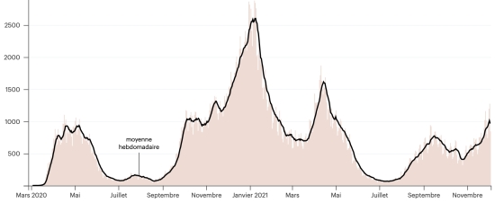 Test: 13,654,906 people tested since the first case (34,819 in 24 hours) Vaccination: 13,695,097 million doses of vaccine injected since December 16, 2020 date of the first injection (+27,893 in 24 hours), latest data available - MSSS as of December 3, 2021) FRANCE: * Cases confirmed since the first case (January 24, 2020): 7,917,264 cases (+42,252 cases in 24 hours), the day before (+ 51,624) * Healings: 7,171,380 healings (+3,241 in 24 hours), the day before (+12,447) National Healing Rate: 90.57% (-) Death: 119,535 deaths (+29 in 24 hours), the day before (+49) National death rate: 1.50% (-) * Active cases: (excluding death and cures) 626,349 (+38,982 in 24 hours), the day before (+39,128) France: Number of daily confirmed cases: