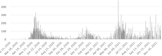 4th wave: The total of the 4th wave (beginning of September 20, 2021) amounts to 4,116 confirmed cases and 137 deaths . Cases tested since the start of the pandemic: 143,892 cases (+738 in 24 hours) latest data available. Note that the very low number of people tested does not statistically make it possible to make a representative estimate of the active cases of Covid-19 in Haiti. This also explains the low number of cases detected daily. By comparison, the neighboring Republic has carried out more than 2.4 million tests on its population since the start of the epidemic. TOP 5 most affected municipalities in the West (2021): Delmas: 2.626 (+2); Pétion ville 2,027 (+0); Port-au-Prince 1,399 (+4); Tabarre 1,175 (+0); Croix-des-Bouquets 1,151 (+3) Confirmed cases by department (2021): West: 9,717 (2020: 6,945 cases) North: 667 cases (2020: 677 cases) Center: 988 cases (2020: 508 cases) Artibonitis: 781 cases (2020: 593 cases) Northeast: 369 cases (2020: 314 cases) Southeast: 701 cases (2020: 274 cases) South: 779 cases (2020: 262 cases) Northwest: 398 cases (2020: 229 cases) Grand'Anse: 820 cases (2020: 176 cases) Nippes: 229 cases (2020: 149 cases) Cumulative deaths by department (2021): West: 255 deaths (2020: 104 deaths) North: 53 deaths (2020: 34 deaths) Center: 52 deaths (2020: 13 deaths) Artibonitis: 35 deaths (2020: 39 deaths) Northeast: 6 deaths (2020: 6 deaths) South: 46 deaths (2020: 6 deaths) Southeast: 13 deaths (2020: 9 deaths) Northwest: 15 deaths (2020: 12 deaths) Grand'Anse: 7 deaths (2020: 13 deaths) Nippes: 24 deaths (2020: 5 deaths) Distribution of deaths by age (since the start of the epidemic): 0-9 years: 13 deaths 10-19 years: 8 death 20-29 years: 25 deaths 30-39 years: 48 deaths 40-49 years: 75 deaths 50-59 years: 118 deaths 60-69 years: 172 deaths 70-79 years: 165 deaths 80 years and over: 123 deaths Vaccination: 153.182 (+17.926 in 20 days) doses of “Spikevax” vaccine from the MODERNA Laboratory have been injected in total in Haiti since July 16, 2021, date of the first injection. Update 20 November 2021, last information available. 68,888 people are fully vaccinated (2 doses). Update 20 November 2021, latest data available. List of 149 vaccination centers open in Haiti (and hours) by department: (update 20 October 2021) DIASPORA: Epidemiological situation: USA: * Case since the first case (February 29, 2020): 49,969,856 cases (+35,065 in 24 hours), the day before (+56,742) * Healings: 39,523,573 healings (+25,462 in 24 hours), the day before (+34,866) National Healing Rate: 79.09% (=) * Death: 808,763 deaths (+155 in 24 hours), the day before (+492) National death rate: 1.61% (=) * Active cases (less deaths and recoveries): 9,637,520 cases (+9,448 in 24 hours), the day before (+21,384) Test: 760,636,842 last available data. USA: Trend of active cases: (less healings and deaths)