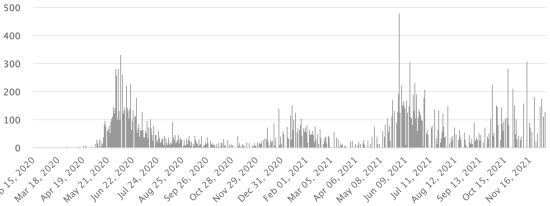 4th wave: The total of the 4th wave (beginning of September 20, 2021) amounts to 4,229 confirmed cases and 144 deaths . Cases tested since the start of the pandemic: 145,523 cases (+960 in 48 hours) latest data available. Note that the very low number of people tested does not statistically make it possible to make a representative estimate of the active cases of Covid-19 in Haiti. This also explains the low number of cases detected daily. By comparison, the neighboring Republic has carried out more than 2.4 million tests on its population since the start of the epidemic. TOP 5 most affected municipalities in the West (2021): Delmas: 2.645 (+7); Pétion ville 2,035 (+4); Port-au-Prince 1,402 (+1); Tabarre 1.176 (+1); Croix-des-Bouquets 1,159 (+2) Confirmed cases by department (2021): West: 9,761 (2020: 6,945 cases) North: 677 cases (2020: 677 cases) Center: 992 cases (2020: 508 cases) Artibonitis: 799 cases (2020: 593 cases) Northeast: 373 cases (2020: 314 cases) Southeast: 712 cases (2020: 274 cases) South: 786 cases (2020: 262 cases) Northwest: 398 cases (2020: 229 cases) Grand'Anse: 840 cases (2020: 176 cases) Nippes: 236 cases (2020: 149 cases) Cumulative deaths by department (2021): West: 258 deaths (2020: 104 deaths) North: 53 deaths (2020: 34 deaths) Center: 55 deaths (2020: 13 deaths) Artibonitis: 35 deaths (2020: 39 deaths) Northeast: 6 deaths (2020: 6 deaths) South: 47 deaths (2020: 6 deaths) Southeast: 13 deaths (2020: 9 deaths) Northwest: 15 deaths (2020: 12 deaths) Grand'Anse: 7 deaths (2020: 13 deaths) Nippes: 24 deaths (2020: 5 deaths) Distribution of deaths by age (since the start of the epidemic): 0-9 years: 13 deaths 10-19 years: 9 deaths 20-29 years: 25 deaths 30-39 years: 48 deaths 40-49 years: 76 deaths (+1) 50-59 years: 120 deaths 60-69 years: 172 deaths 70-79 years: 167 deaths (+2) 80 years and over: 124 deaths (+1) Vaccination: 153.182 (+17.926 in 20 days) doses of “Spikevax” vaccine from the MODERNA Laboratory have been injected in total in Haiti since July 16, 2021, date of the first injection. Update 20 November 2021, last information available. 68,888 people are fully vaccinated (2 doses). Update 20 November 2021, latest data available. List of 149 vaccination centers open in Haiti (and hours) by department: (update 20 October 2021) DIASPORA: Epidemiological situation: USA: * Case since the first case (February 29, 2020): 50,270,136 cases (+120,811 in 24 hours), the day before (+179,569) * Healings: 39,742,867 healings (+70,132 in 24 hours), the day before (+149,162) National Healing Rate: 79.05% (-) * Death: 812,205 deaths (+1,951 in 24 hours), the day before (+1,491) National death rate: 1.61% (=) * Active cases (less deaths and recoveries): 9,715,064 cases (+48,728 in 24 hours), the day before (+28,816) Test: 766,393,274 last available data. USA: Trend of active cases: (less healings and deaths)